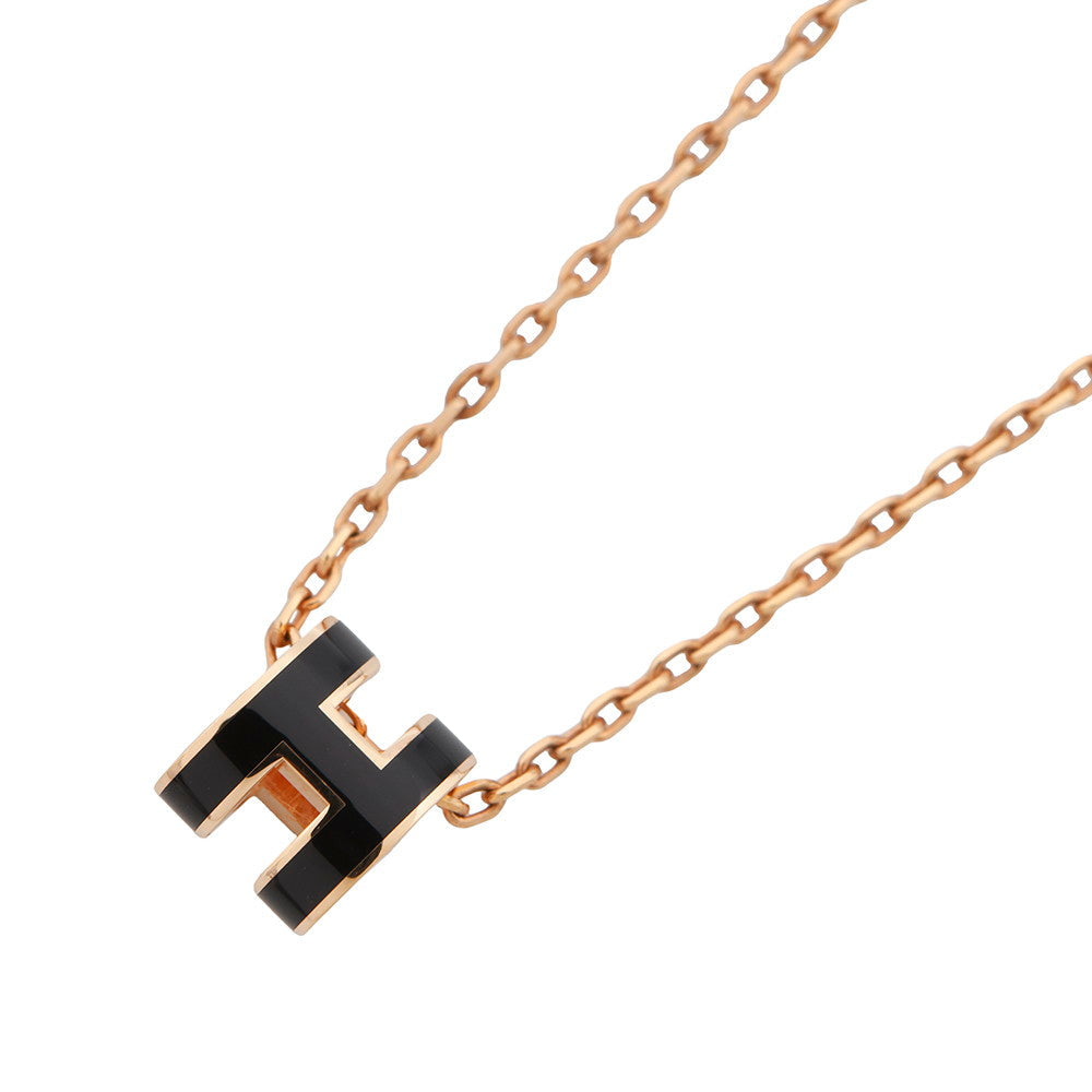 HERMES Pop Ash Necklace Size Mini Black Lacquer Gold Plated