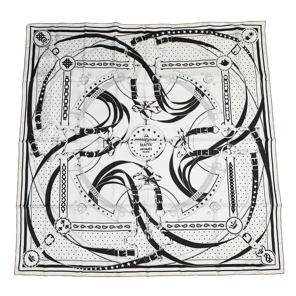 HERMES Giant Square Double Face Morning Walk Bandana Size 140 Black/White/Cuir Silk100%