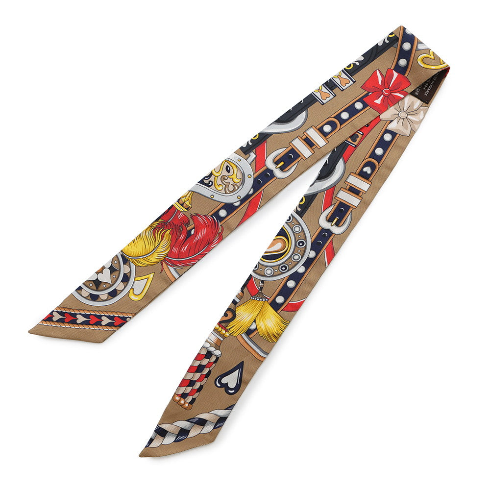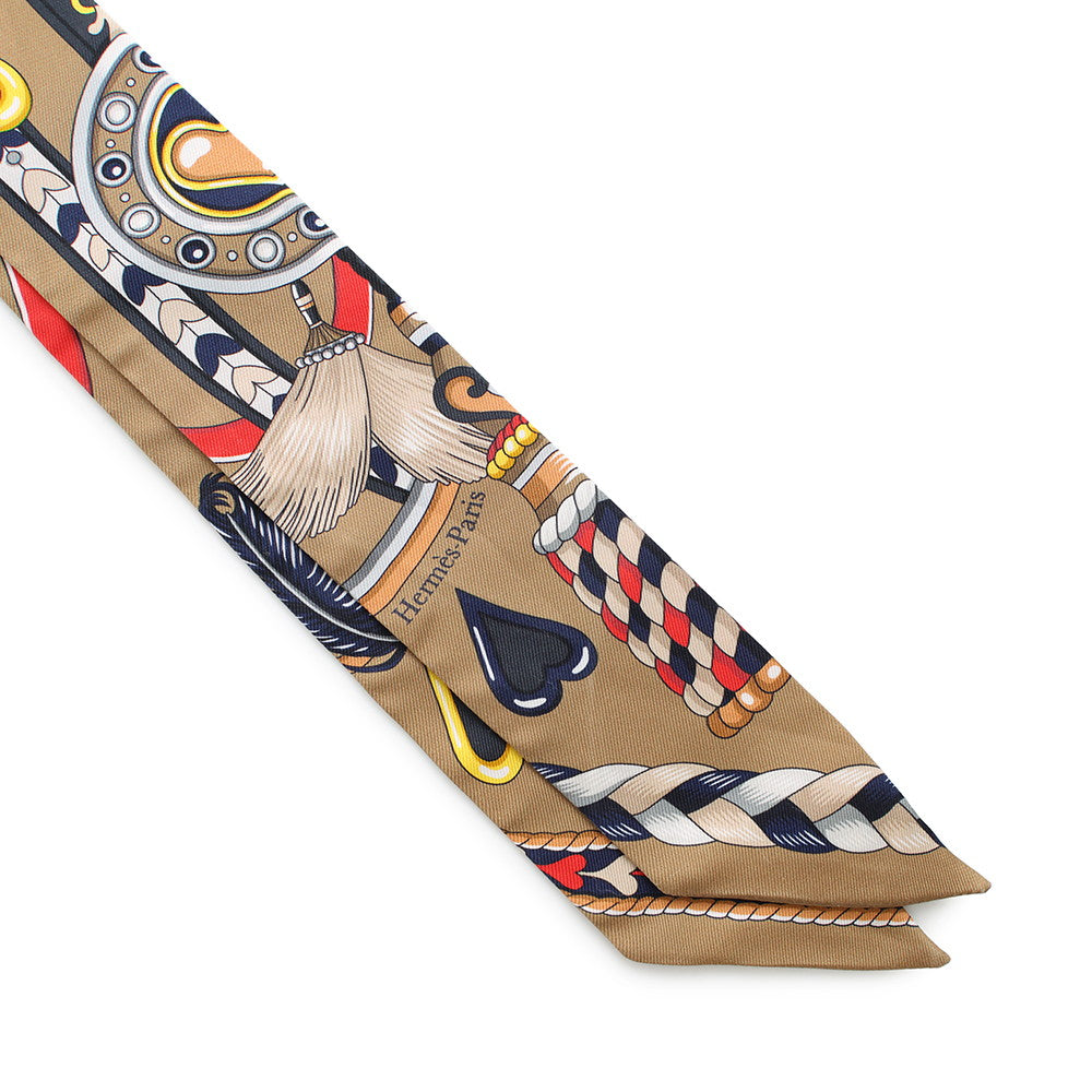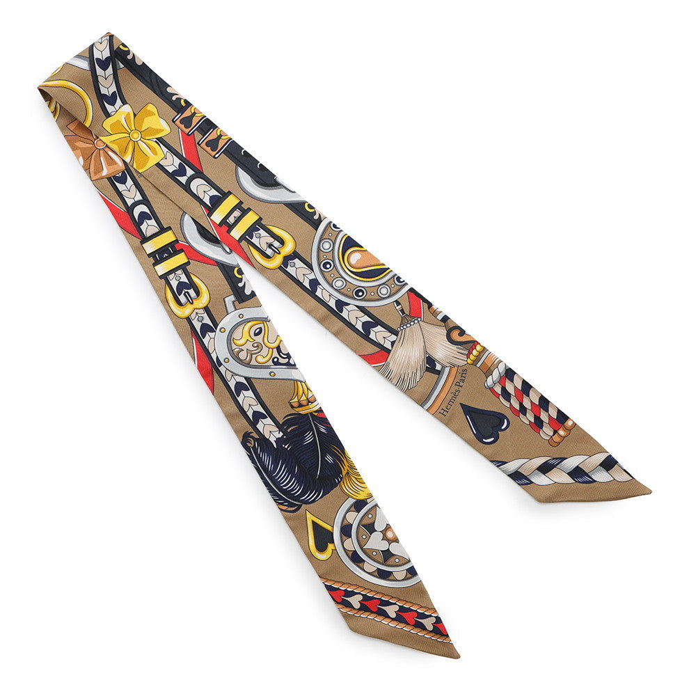 HERMES Twilly Sac Harnais de Coeur Beige Fonce/Red/Anthracite Silk100%