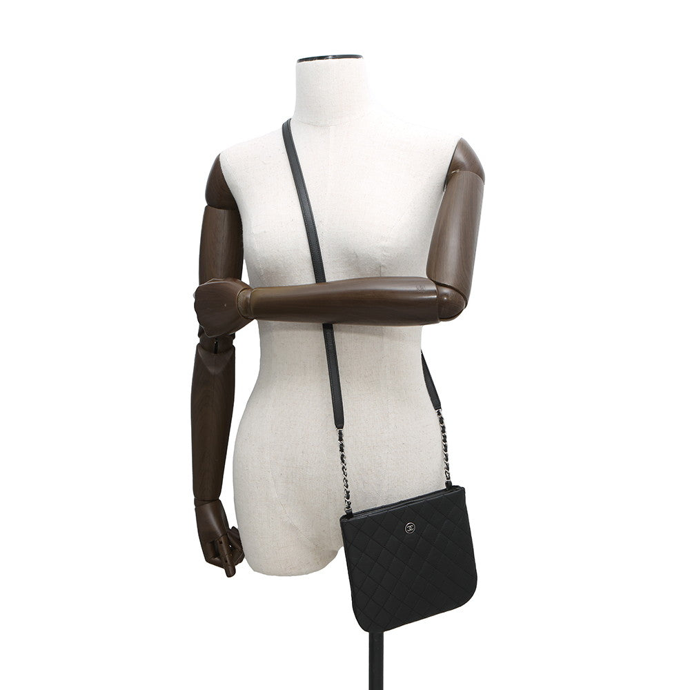 CHANEL Matelasse Uniform COCO Button Mini Pochette ChainShoulder Bag Black Leather