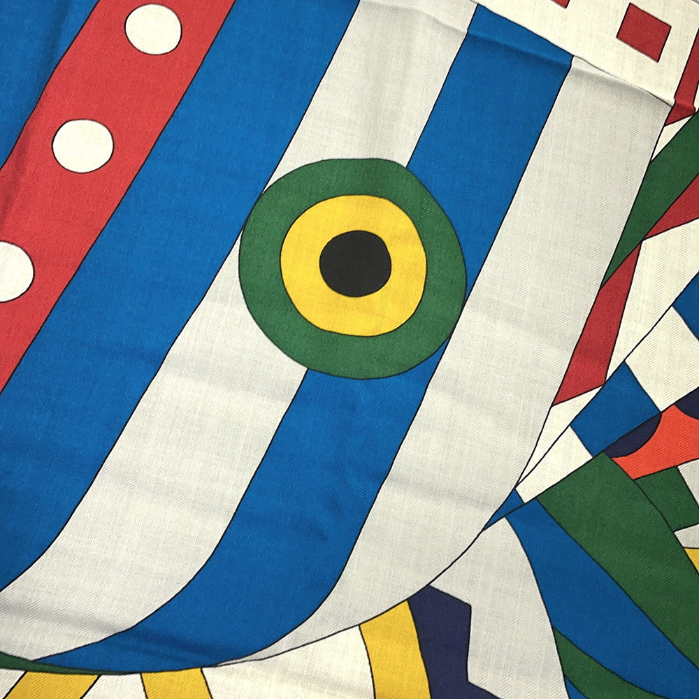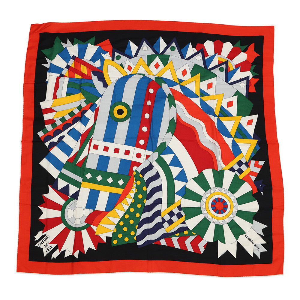 HERMES Giant Square Cheval de Fete Size 140 Vermillon/Black/Multicolor Cashmere70% Silk30%