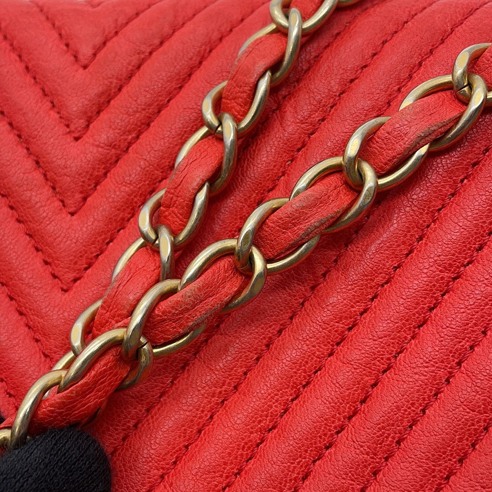 CHANEL Chevron ChainShoulder RedA92087 Leather