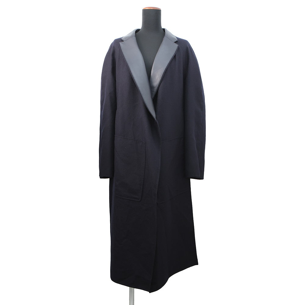 HERMES Soft Tilt Leather Mix Coat Size 38 Navy/Black Cashmere86% Silk14% Sheepskin