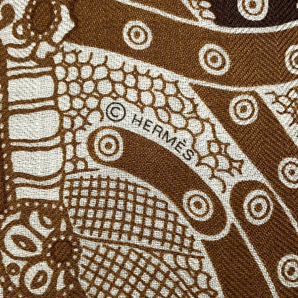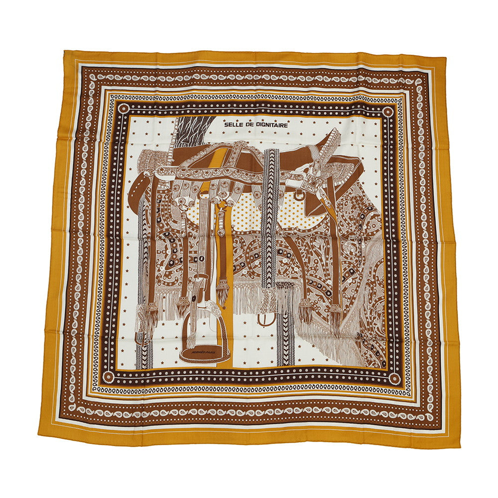 HERMES Giant Square Dignitary's Saddle SELLE DE DIGNITAIRE Size 140 Curry/Camel/Blanc Cashmere70% Silk30%