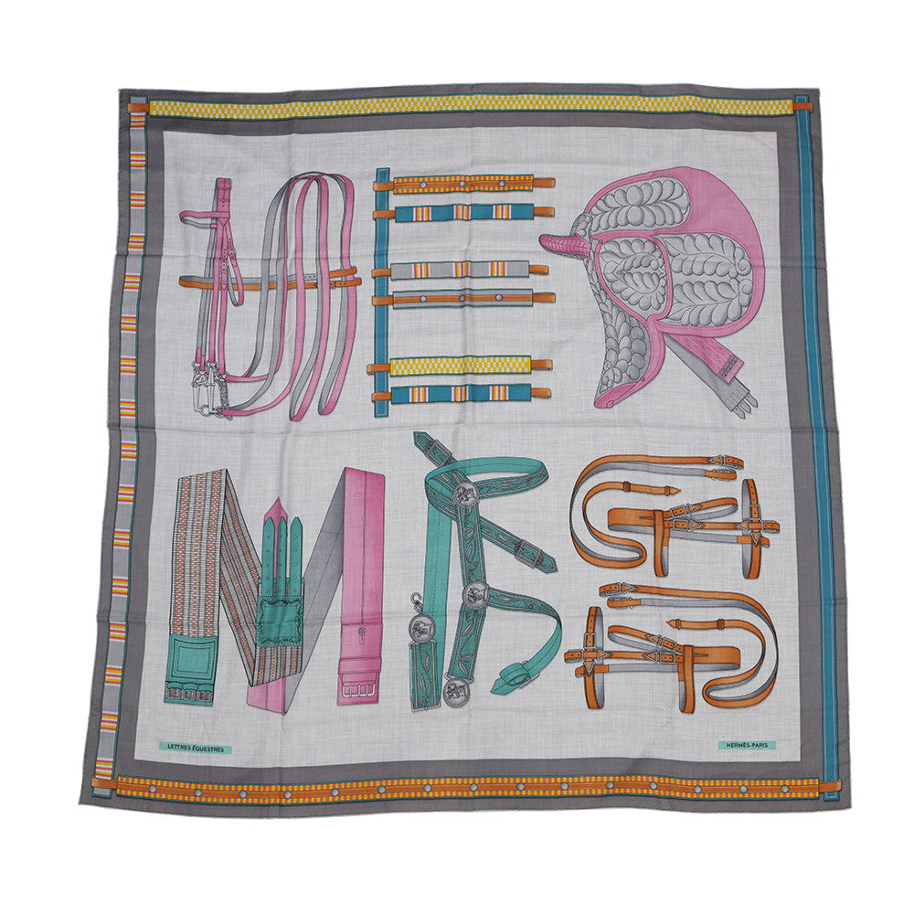 HERMES Giant Square Letol Equestre Size 140 Guri Shine/Green/Pink Cashmere70% Silk30%