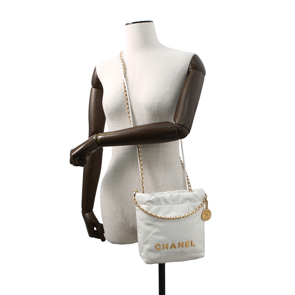 CHANEL CHANEL 22 Mini Shoulder Bag WhiteAS3980 Shiny Calf Leather