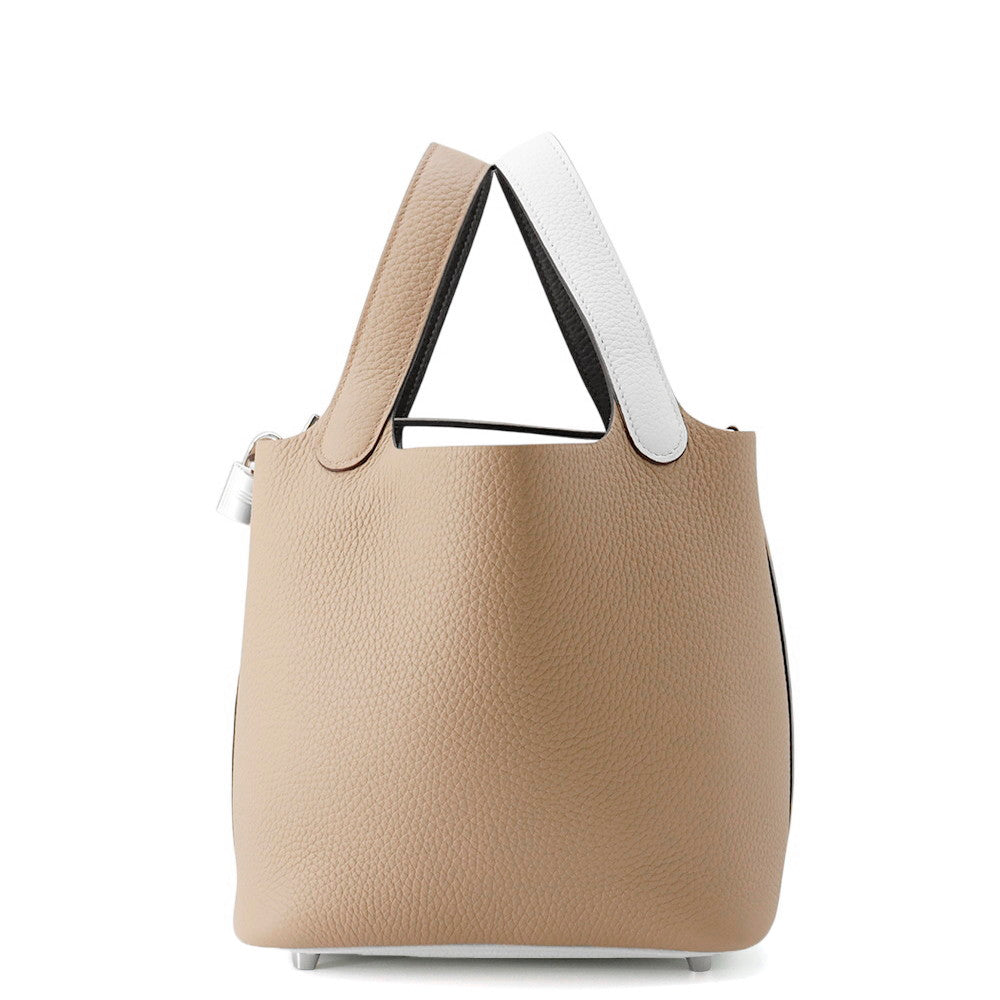 HERMES Picotin Lock Casaque2 Beige Marfa/New White/Macassar Taurillon Clemence Size PM