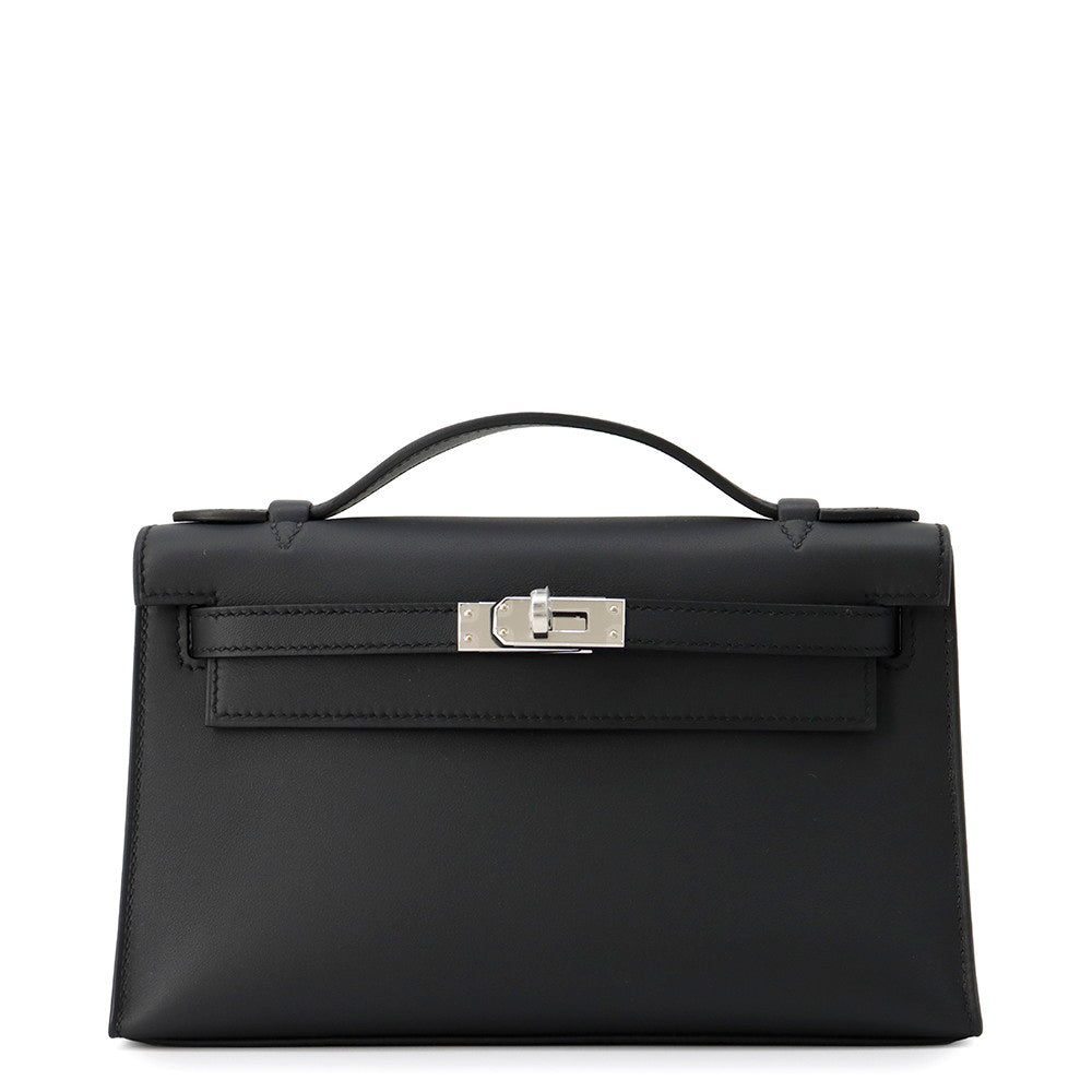 HERMES PochetteKelly Black Swift Leather