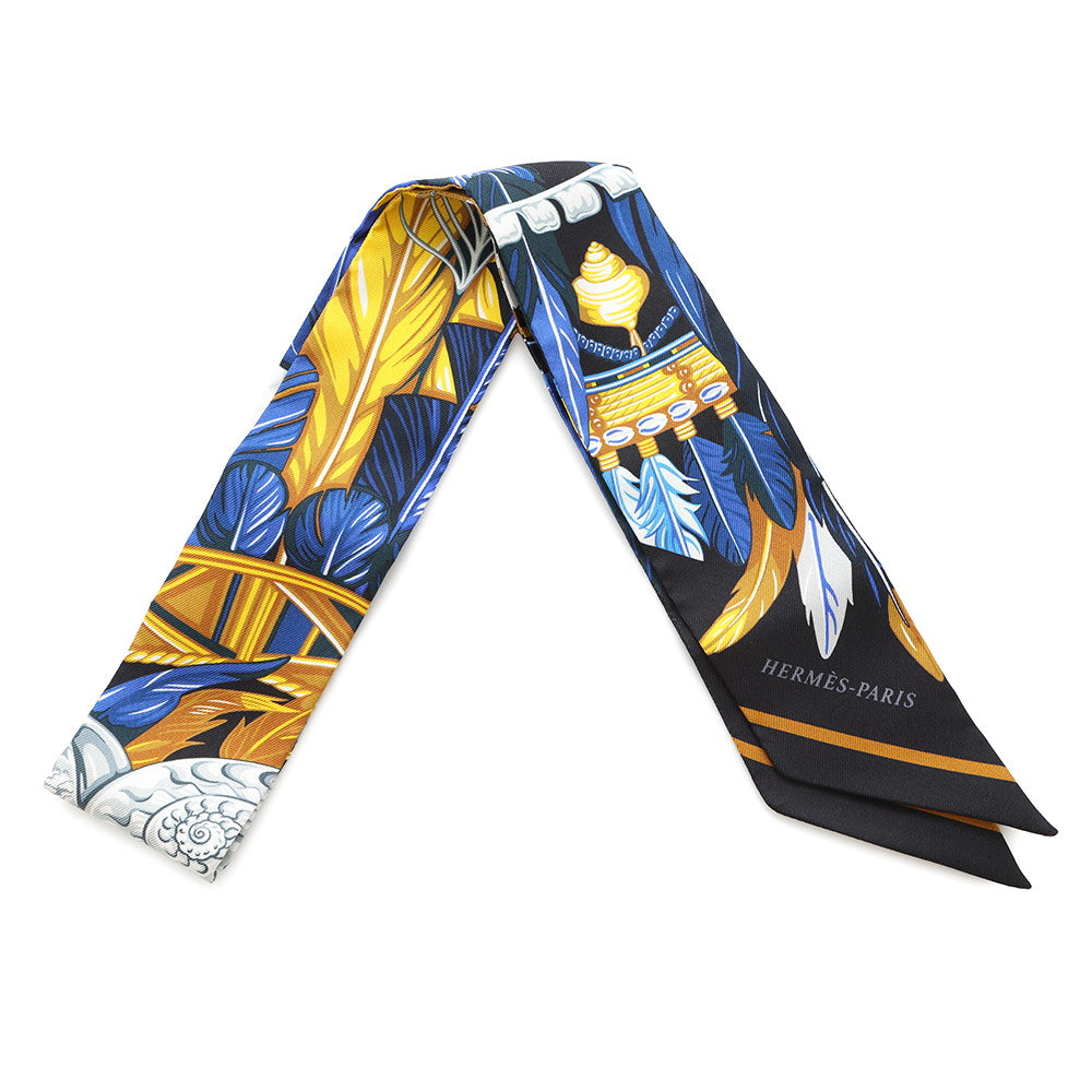 HERMES Twilly Dance Pacific Blue Nuit/Jaune Vif/Black Silk100%