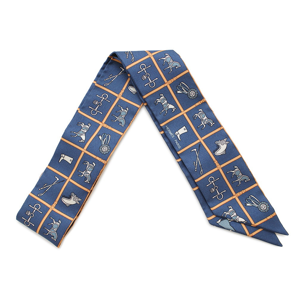 HERMES Twilly Couvertures et Tenues de Jour Marine/Beige/WhiteH061356S Silk100%