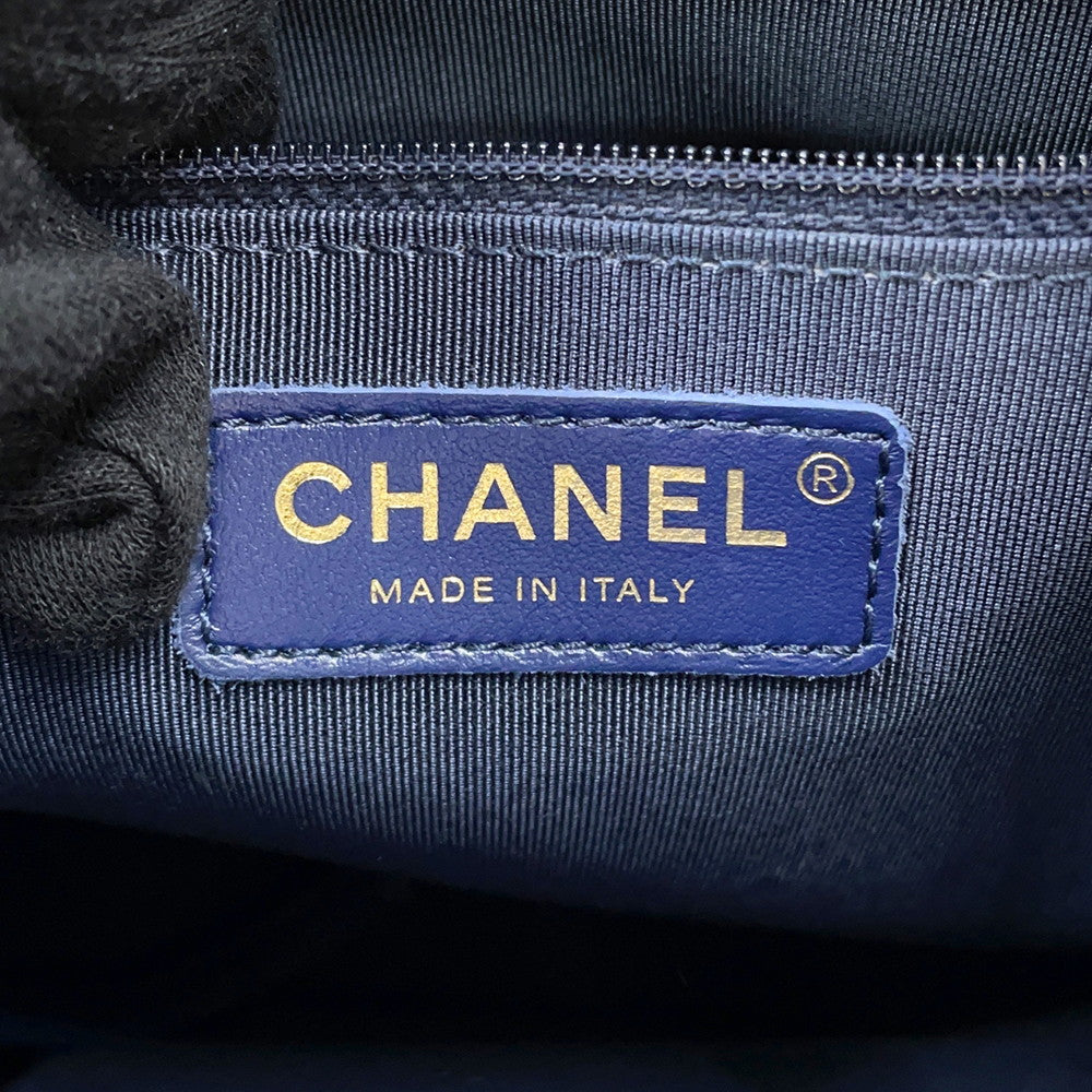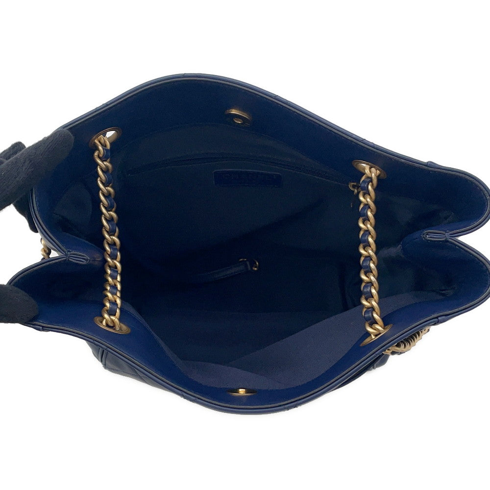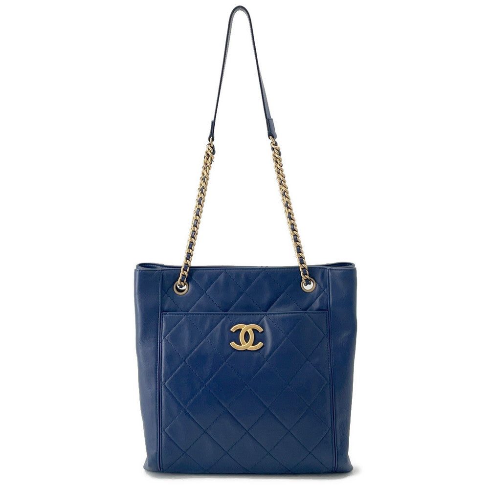 CHANEL Chain Tote Shopping Bag NavyAS2295 Calf Leather Size Small