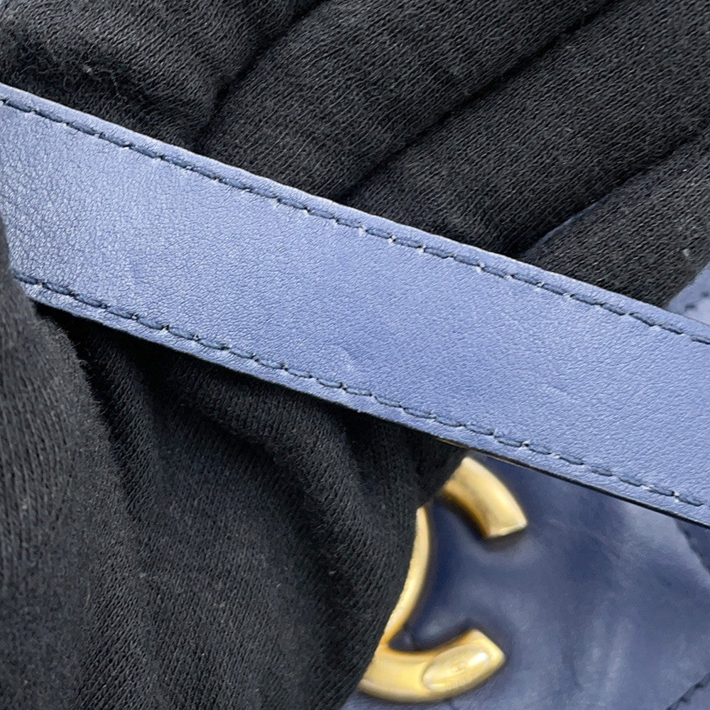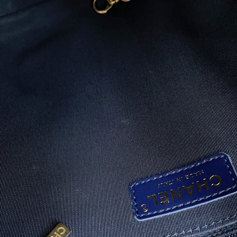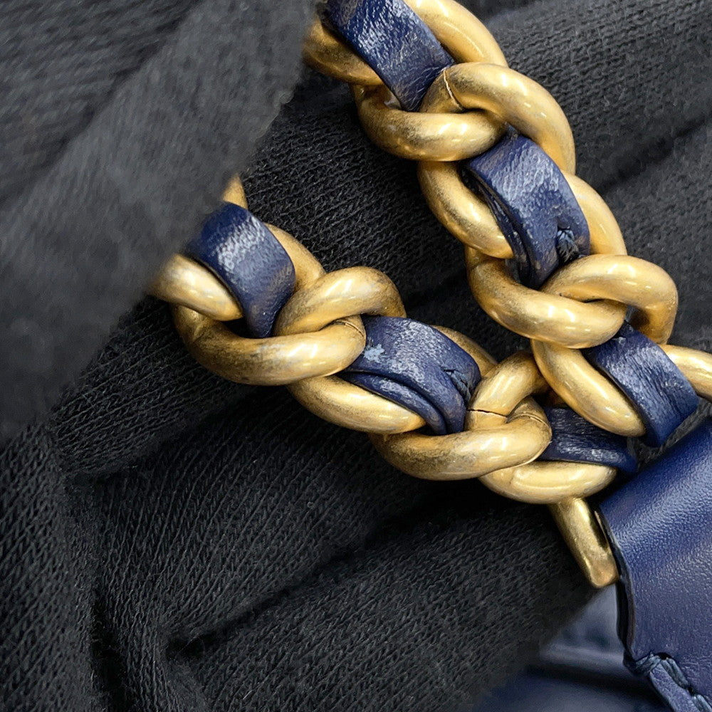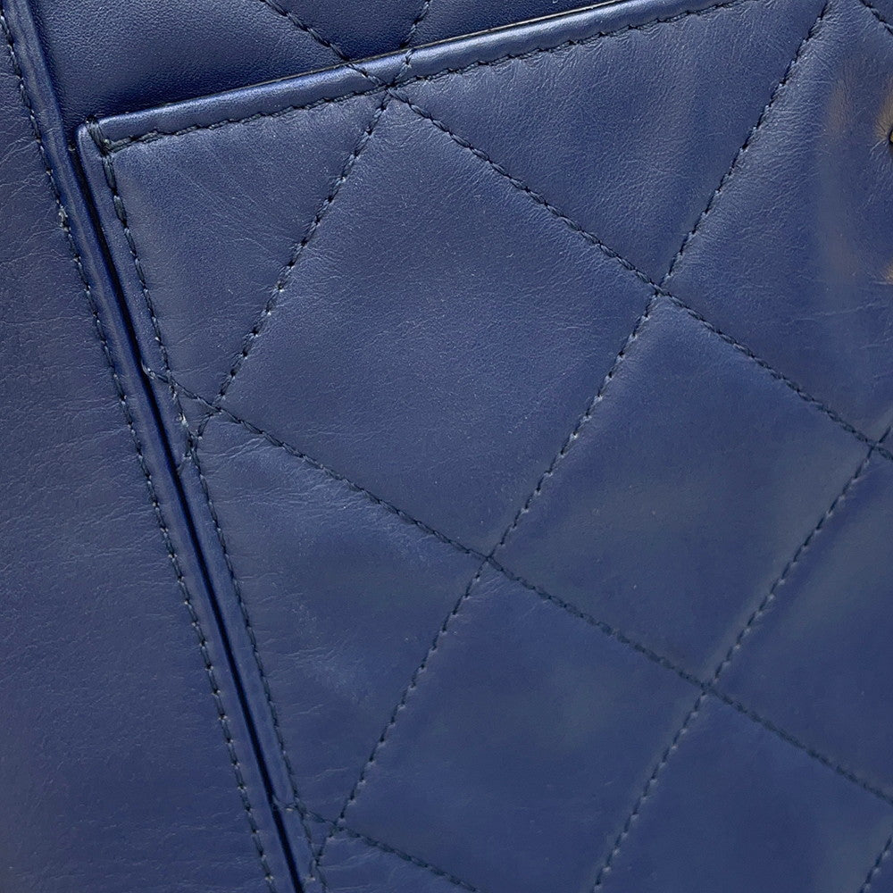 CHANEL Chain Tote Shopping Bag NavyAS2295 Calf Leather Size Small