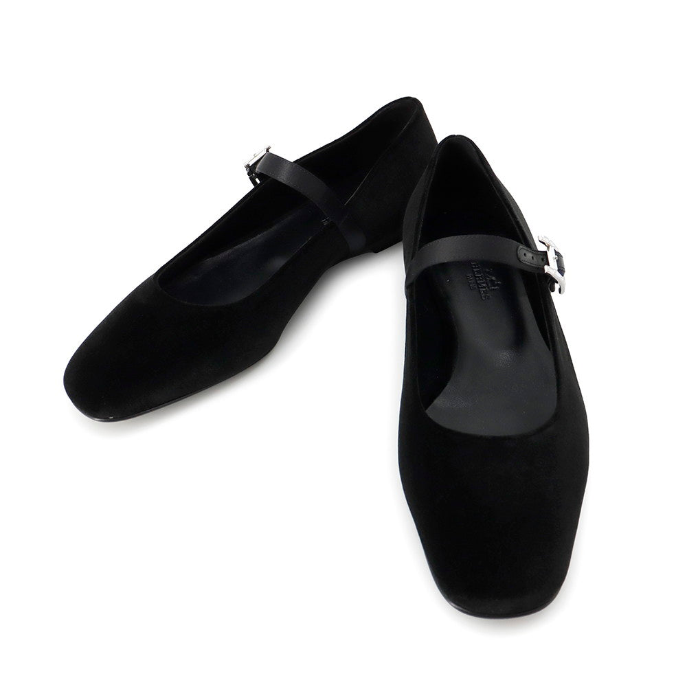 HERMES Jane Pumps Bijoux Black Velour Bijoux Size 37 1/2