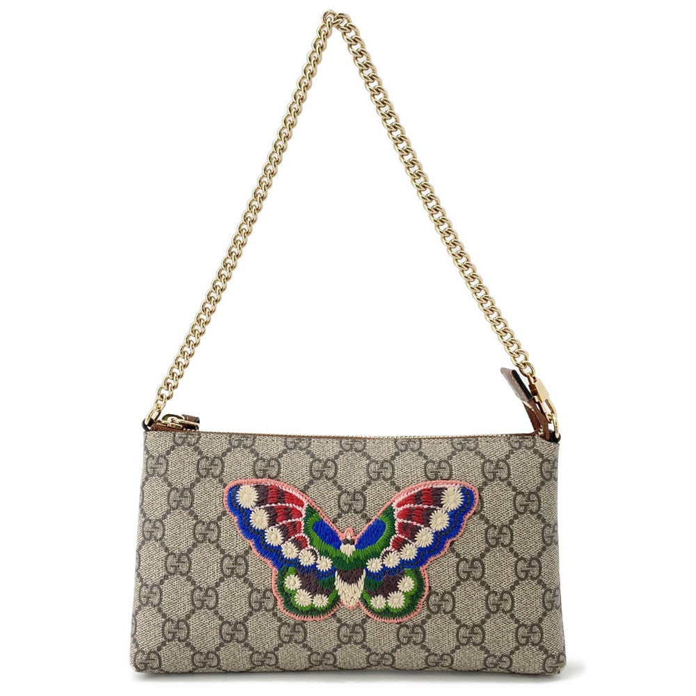 GUCCI GG Supreme Holiday Collection ChainPouch Beige/Brown456866 PVC Leather