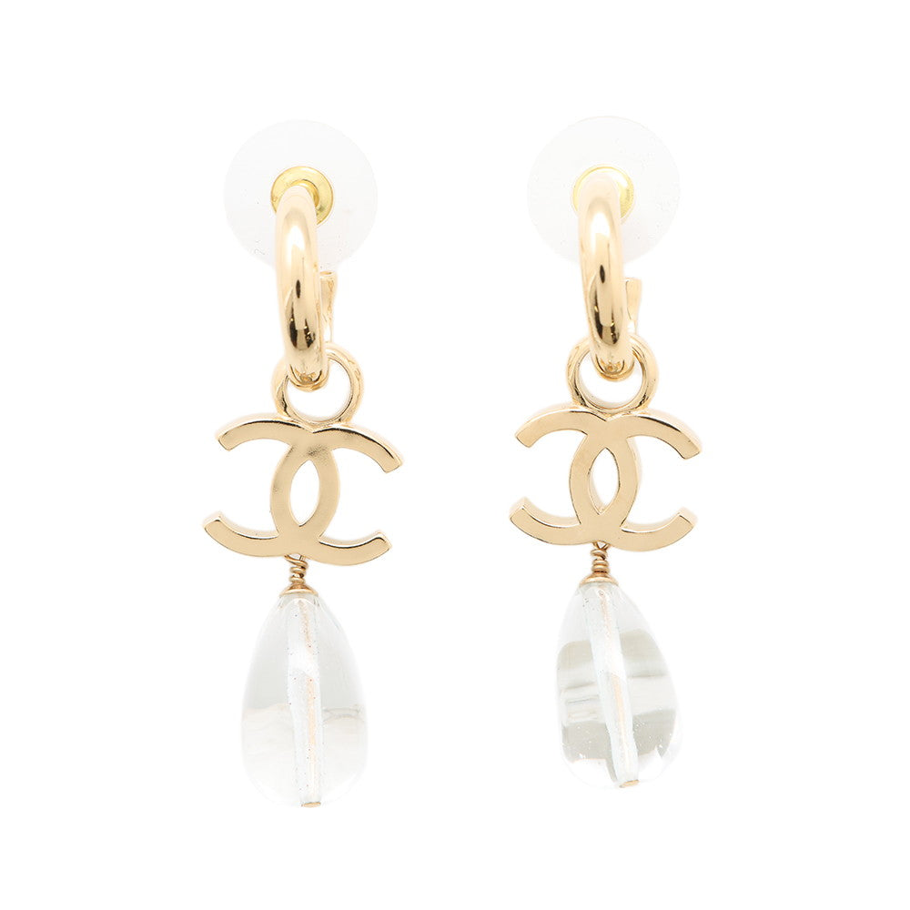 CHANEL CC Logo Hoop Drop Motif Earrings Metal Resin