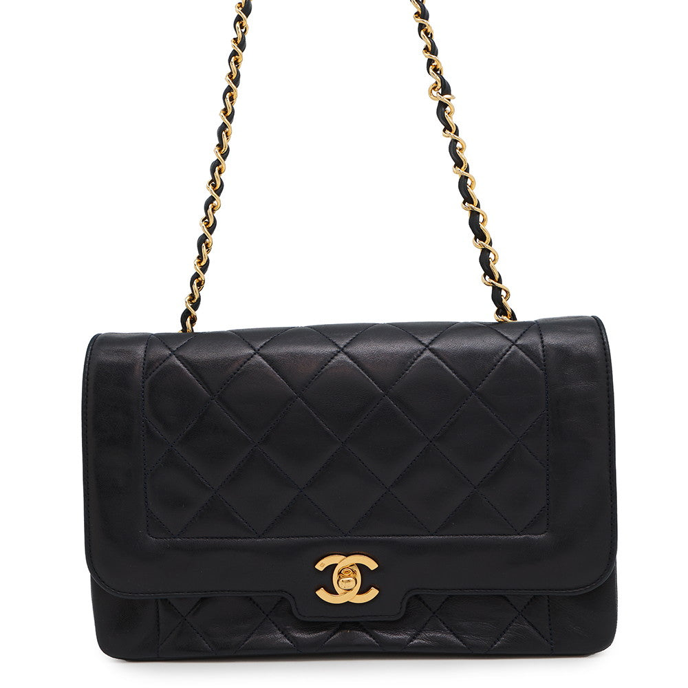 CHANEL Diana ChainShoulder Bag Navy Lambskin