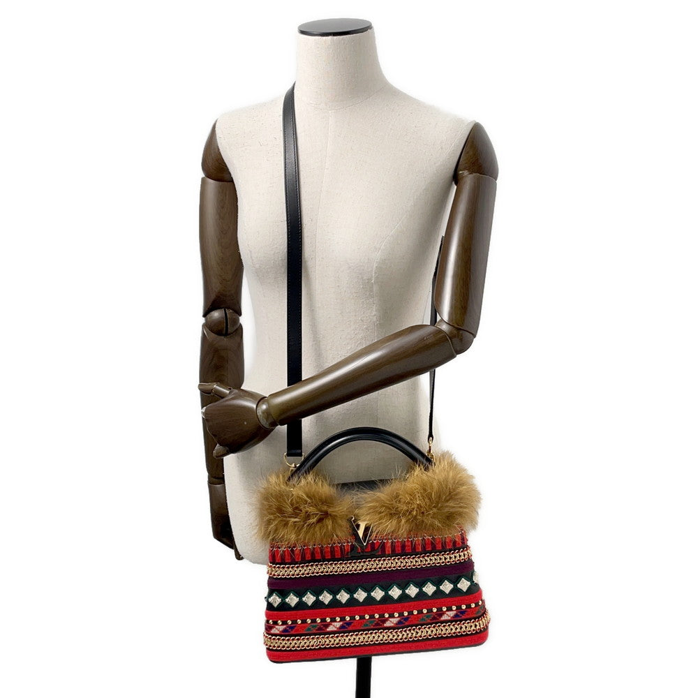 LOUIS VUITTON Capucines Noir/Red/Multicolor Leather Fur