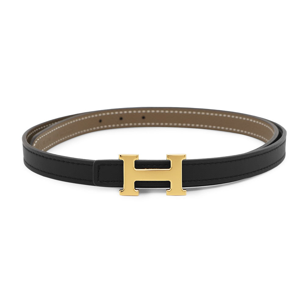 HERMES Constance Mini Reversible Belt Size 70 Black/Etoupe Swift Leather Epsom