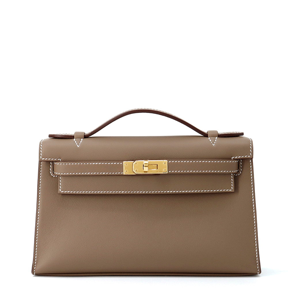 HERMES PochetteKelly Etoupe Swift Leather