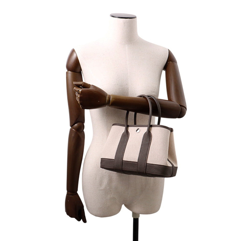 HERMES Neo Garden Ecru/Ebene Toile H Viking Negonda Leather Size 23