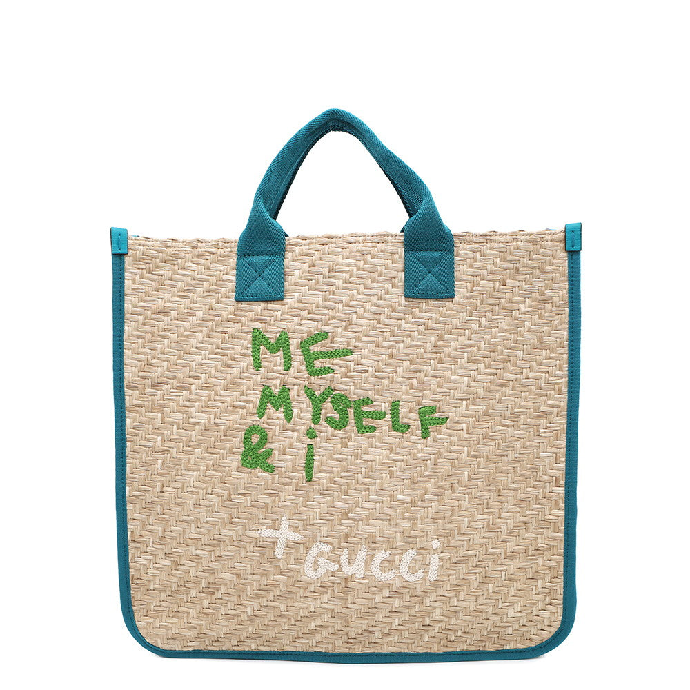 GUCCI Children's Tote Bag Beige/Emerald Green605831 Straw