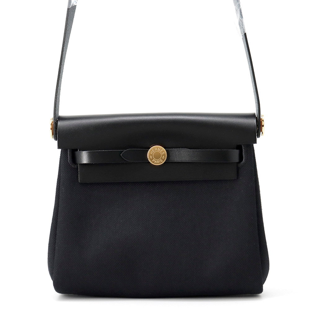 HERMES Herbag zip Black Toile H Viking Vache Leather Hunter Size Mini