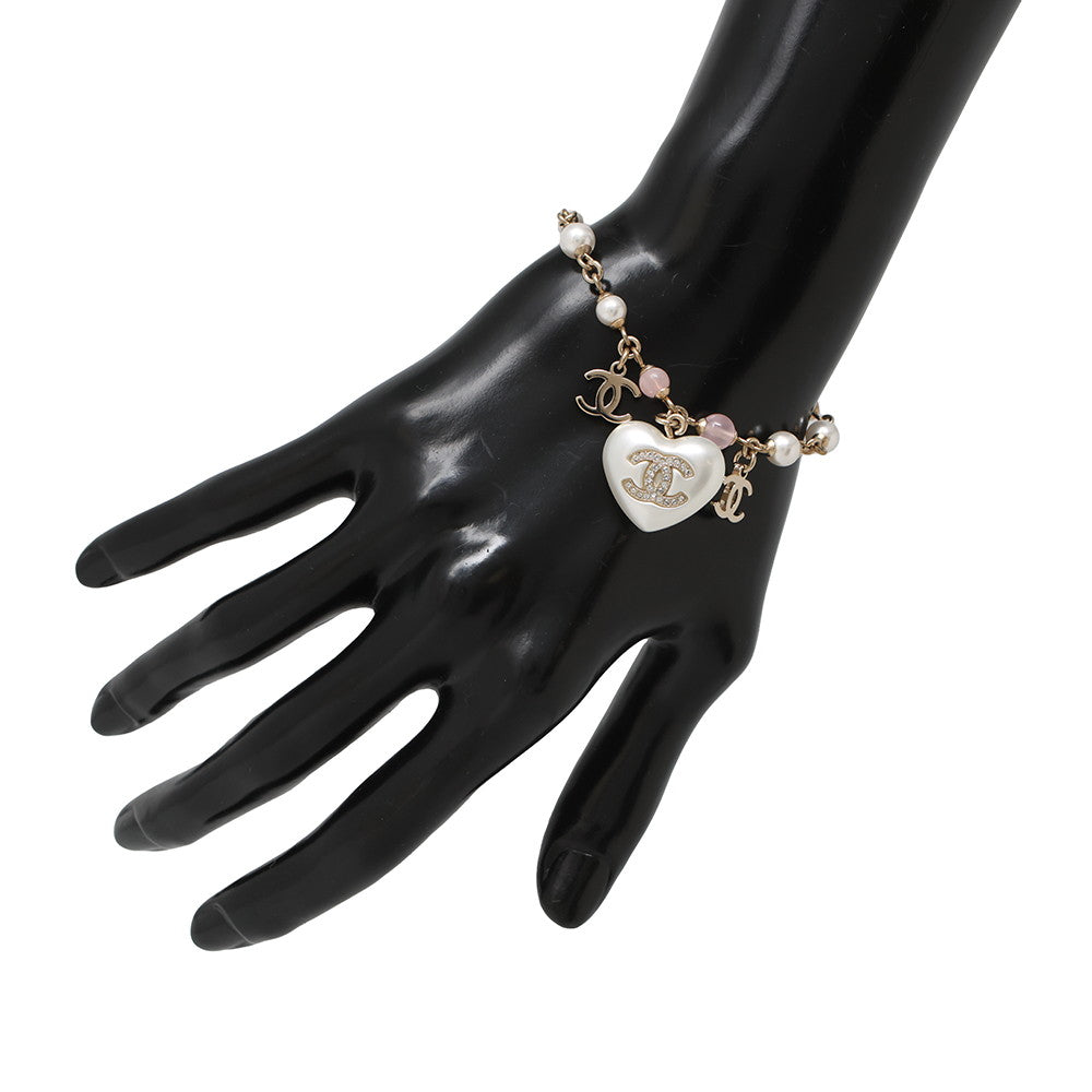 CHANEL CC Logo Heart ChainBraceletAB7003 Metal Faux Pearl Rhinestone