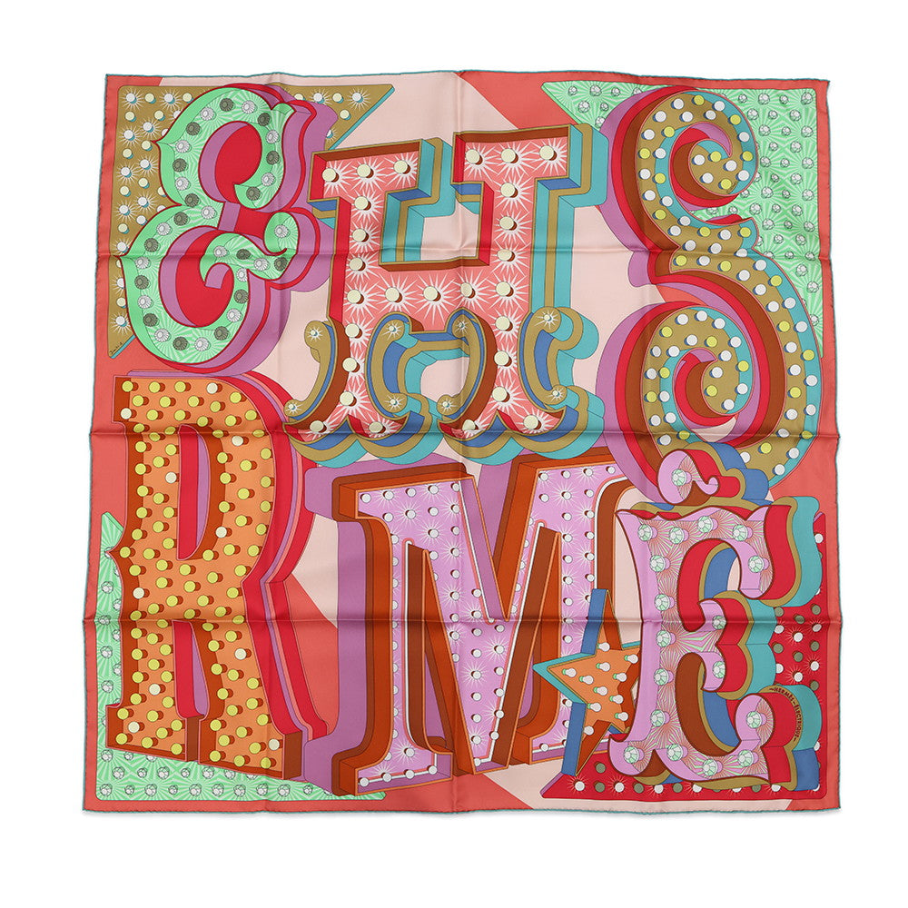 HERMES Carre ELECTRIQUE Size 90㎝ Rose pale/Vert/Multicolor Silk100