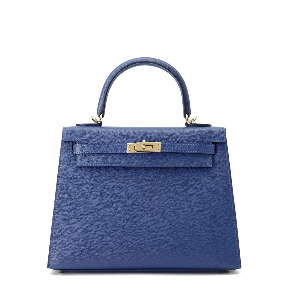 HERMES Kelly Sellier Blue Tie Veau Madame Size 25