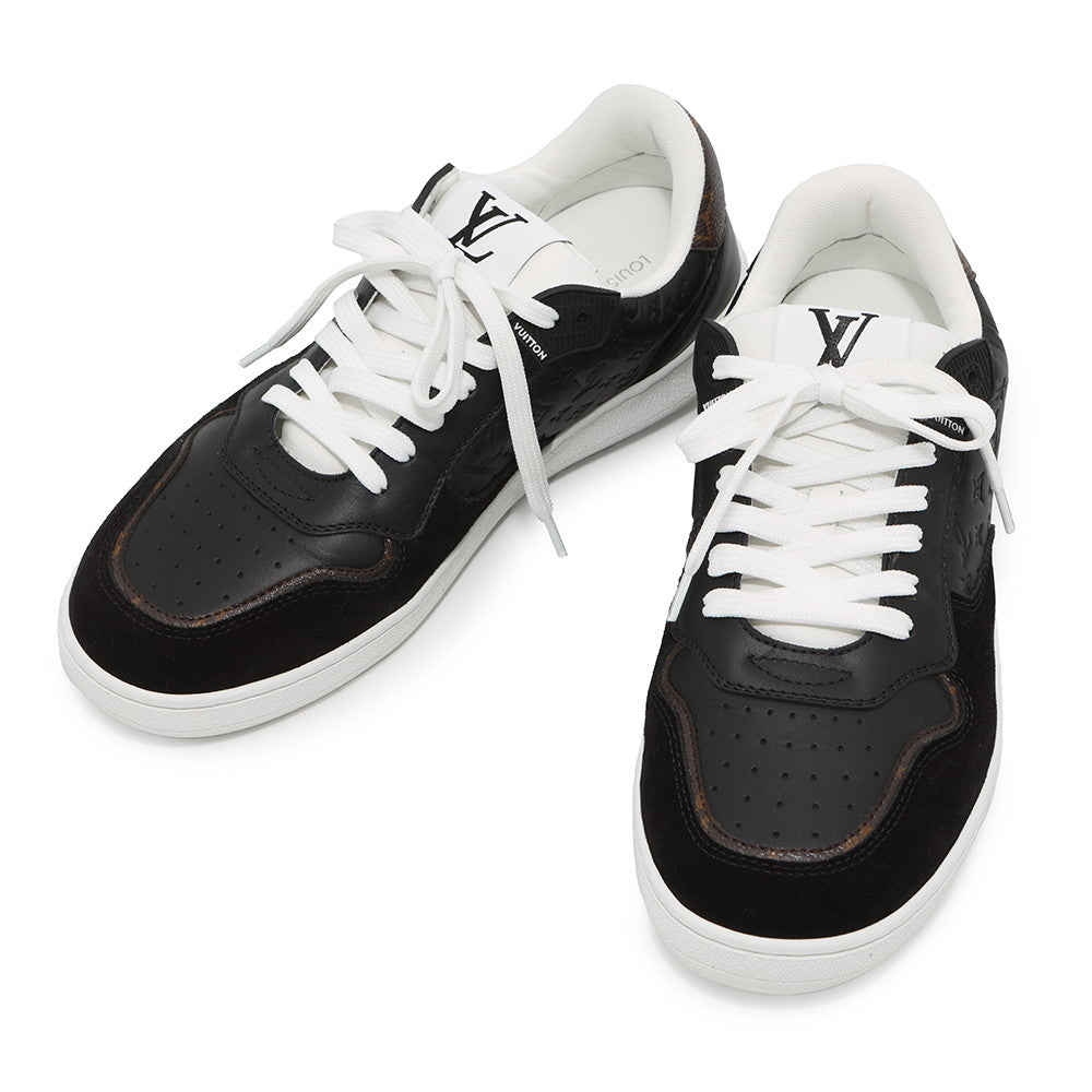 LOUIS VUITTON LV Stadium Sneakers Black1ACUJ3 Monogram Calf Leather Suede Size 38