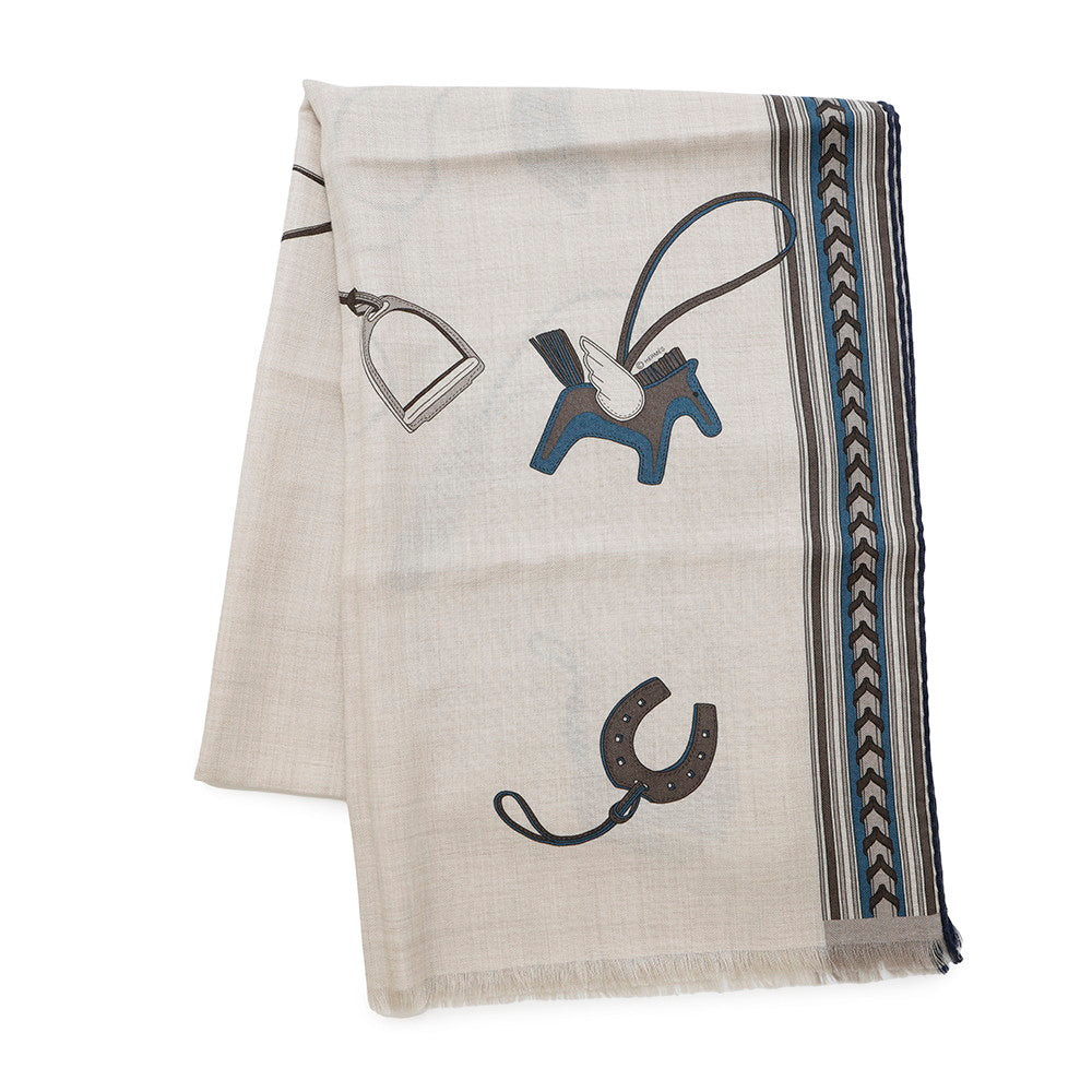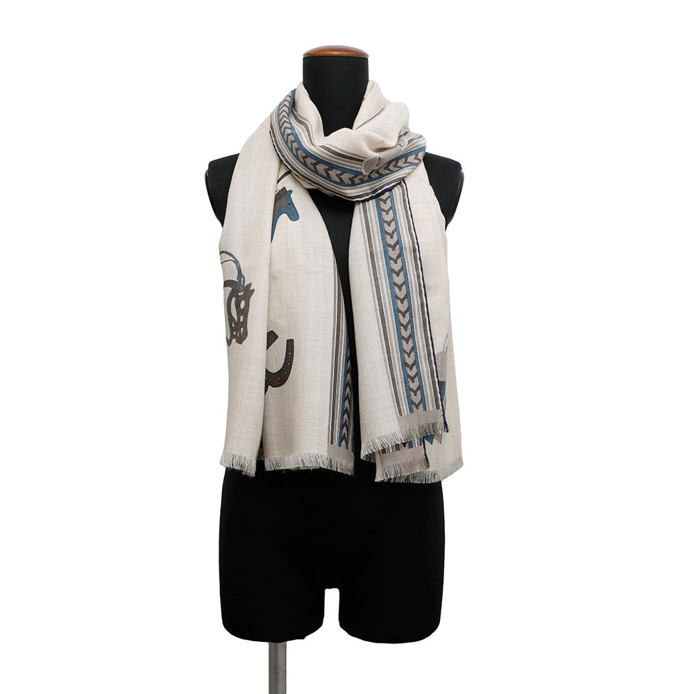 HERMES Rectangle Egrigri Men's Stole Gris Cine/Ciel/Blue Cashmere70% Silk30%