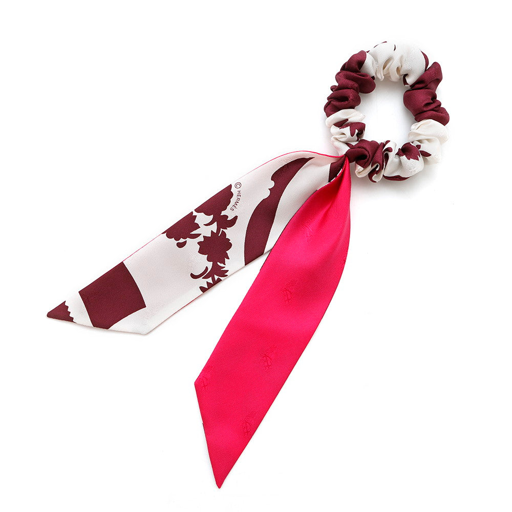 HERMES Scrunchie Bella Pink/Purple/White Silk100%