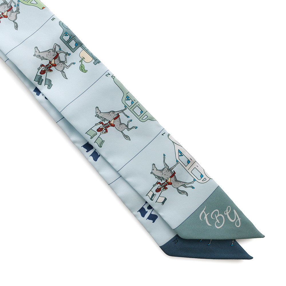 HERMES Twilly HERMES Parade Hermes Parade Blue Gacier/Vert Amond/Gold Silk100%