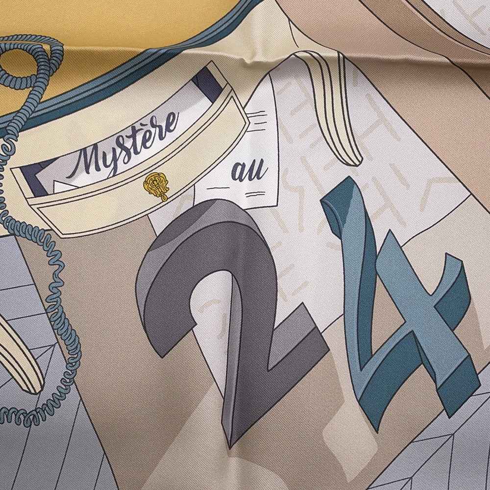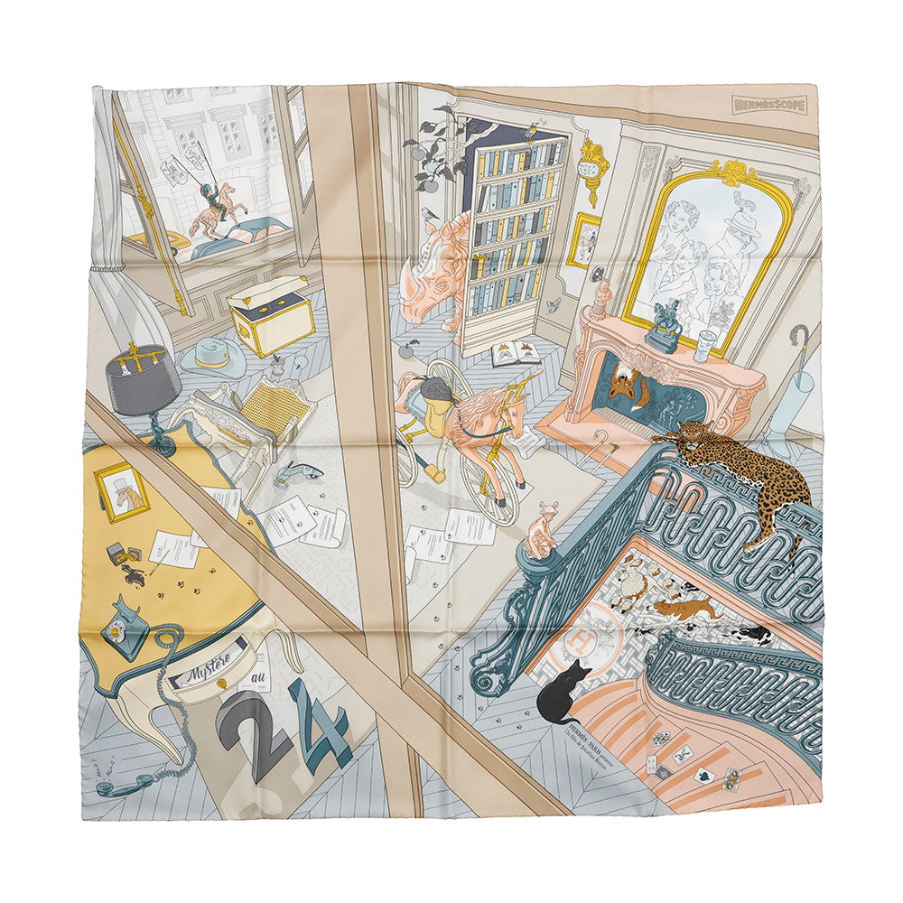 HERMES Carre Mystery at 24 Size 90 Mastic/Rose Poudre/Gre Blue Silk100%