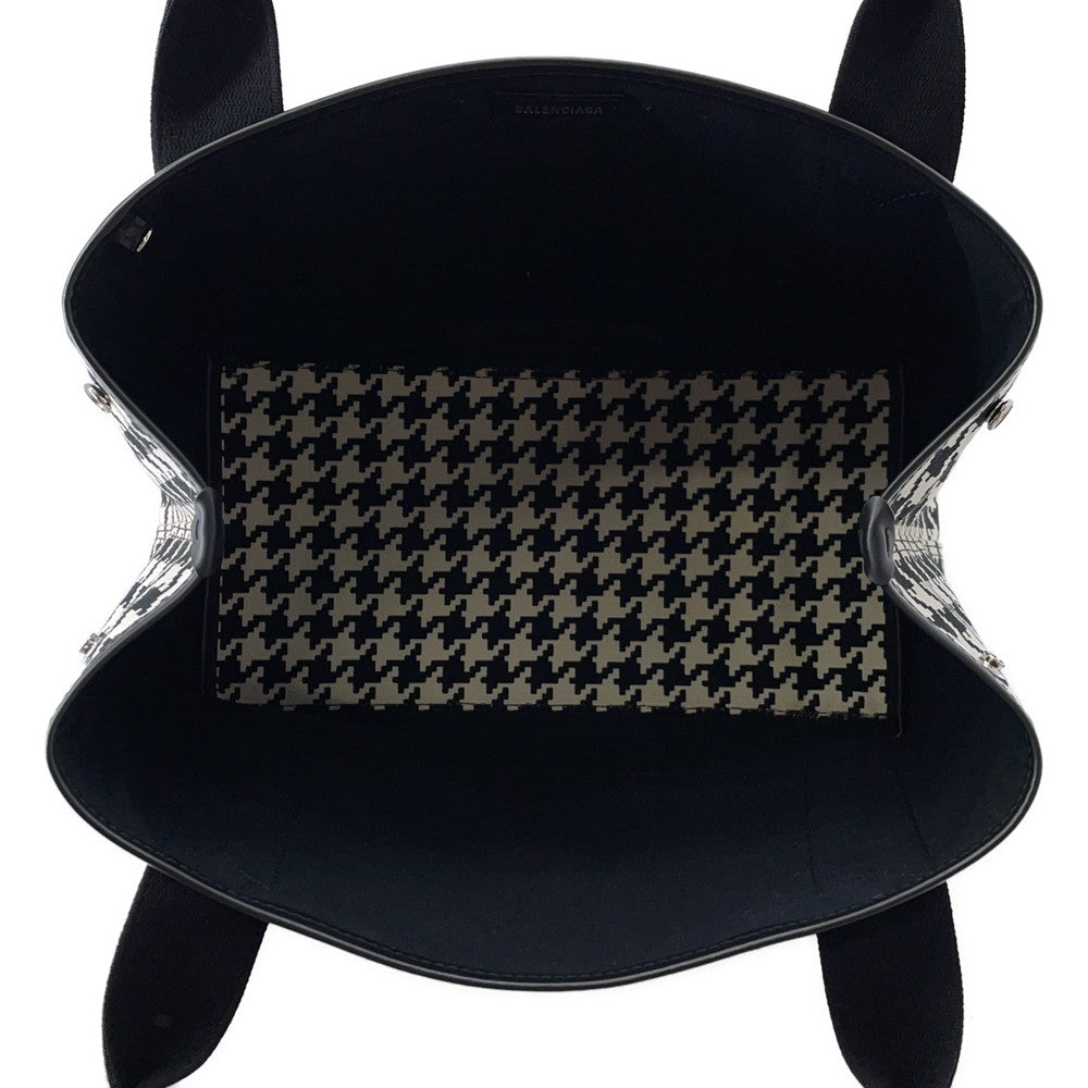 BALENCIAGA Navy Kabas White/Black339933 Canvas Leather Size S