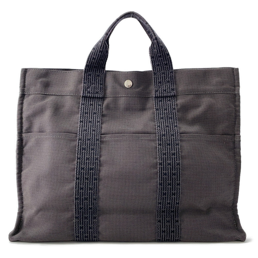 HERMES Her Line Tote Gray Nylon Canvas Size MM