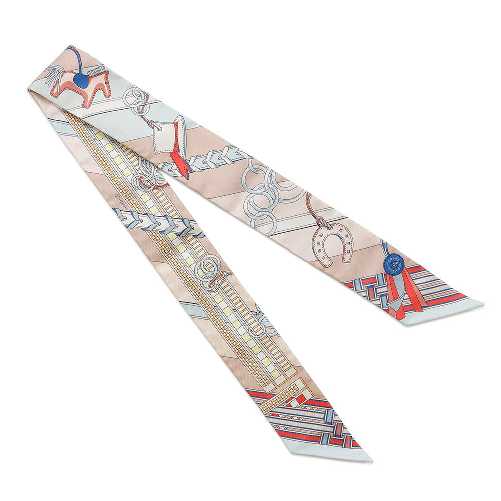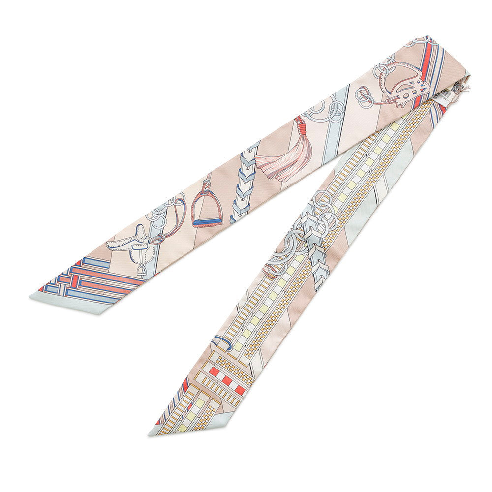 HERMES Twilly Ma Le and Bag Charm Rose Poudre/Blue Gacier/Rouge Silk100%