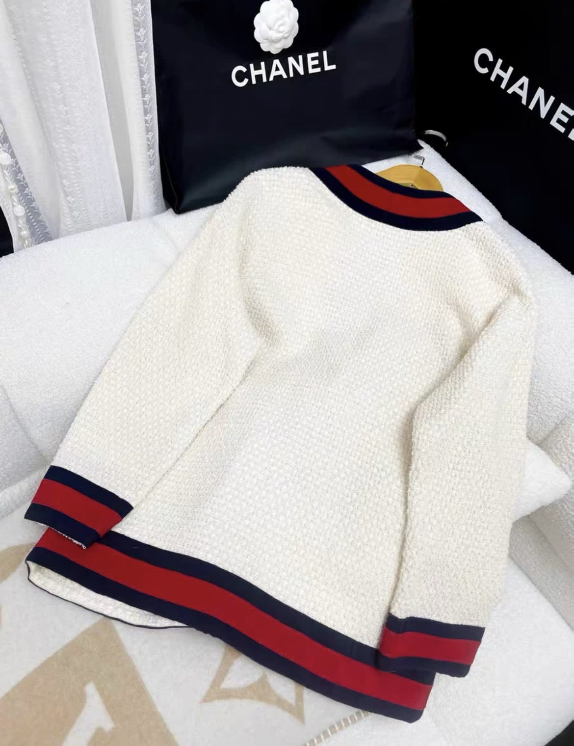 Gucci 40 size classic red and blue edge white gem button cardigan