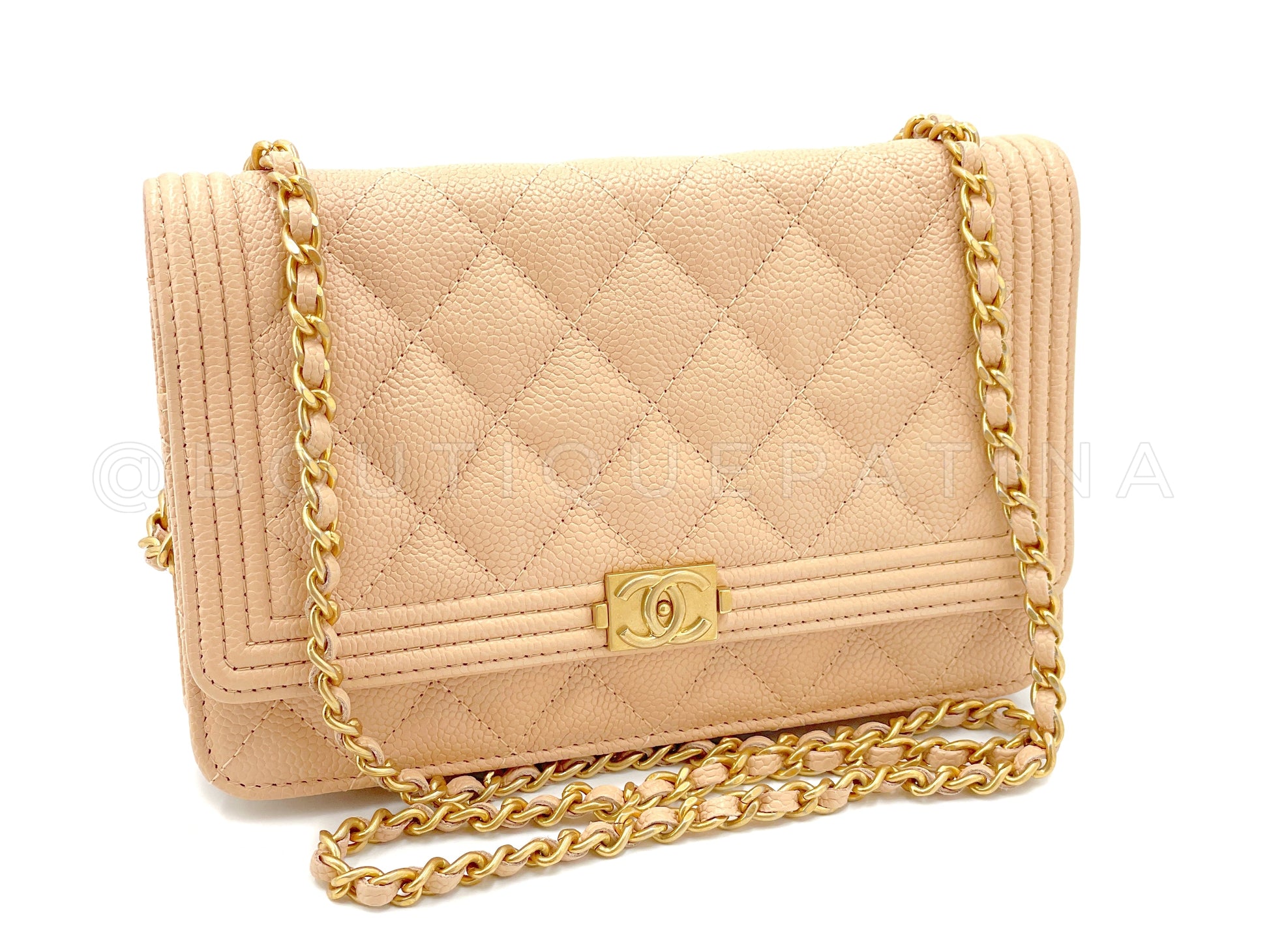 Pristine Chanel 2016 Beige Clair Caviar Boy Wallet on Chain WOC Flap Bag