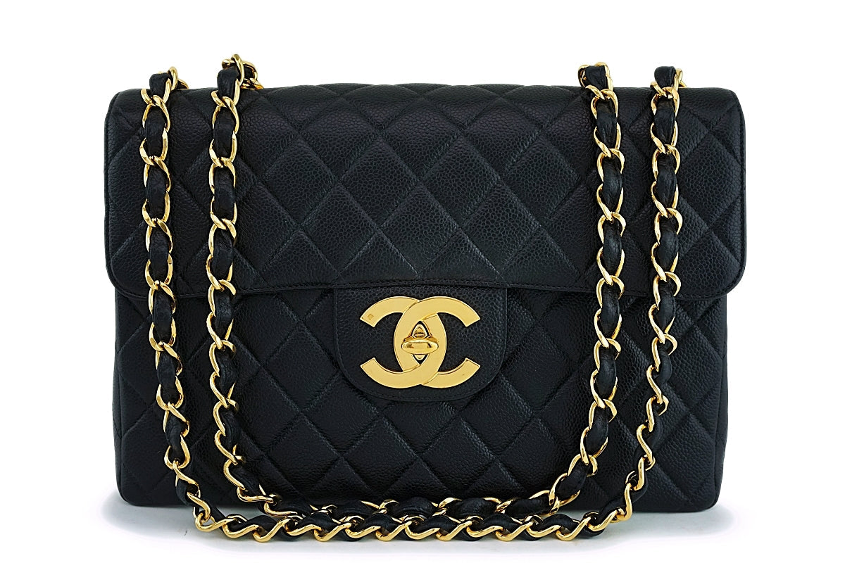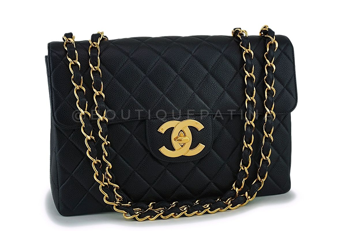This is the jumbo 12" model of this bag (there is the jumbo and the maxi size). Boutique Patina specializes in sourcing and curating the best condition preowned vintage Chanel leather treasures by searching closets around the world.