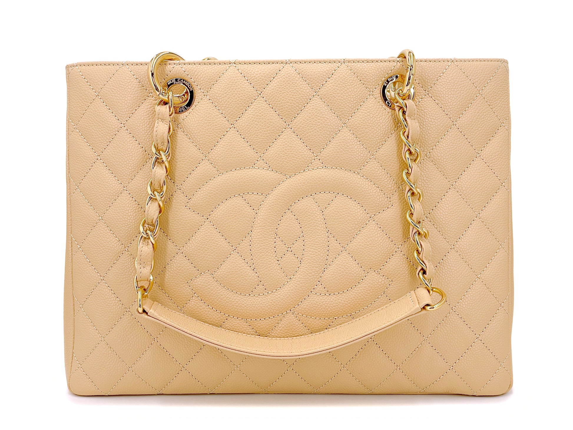 Pristine Chanel Beige Caviar Grand Shopper Tote GST Bag GHW