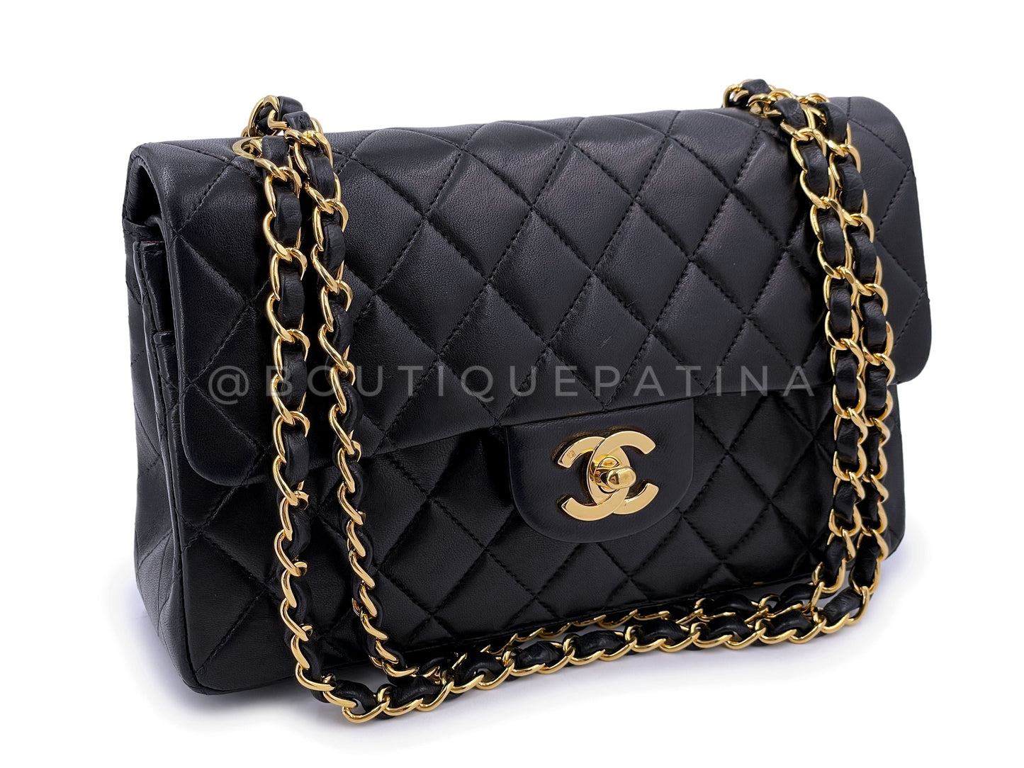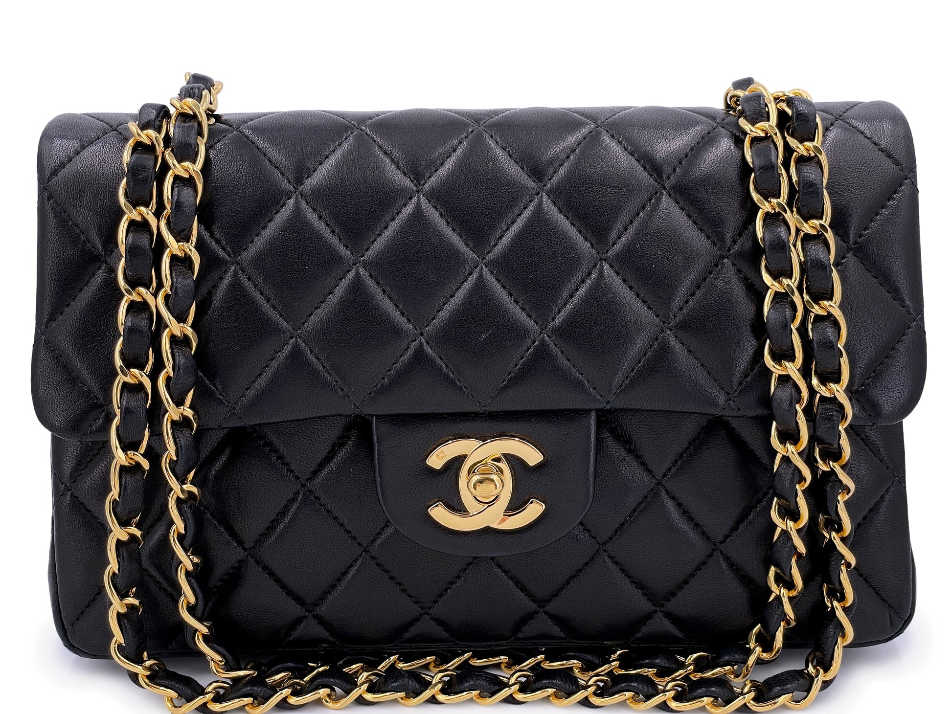 The small size of the classic double flap is harder to find than the medium -- at 9 inches wide, right in between the medium and the rectangular mini, it's the smaller size of the medium flap. Especially for vintage models, this size is harder to find than its medium counterparts.
