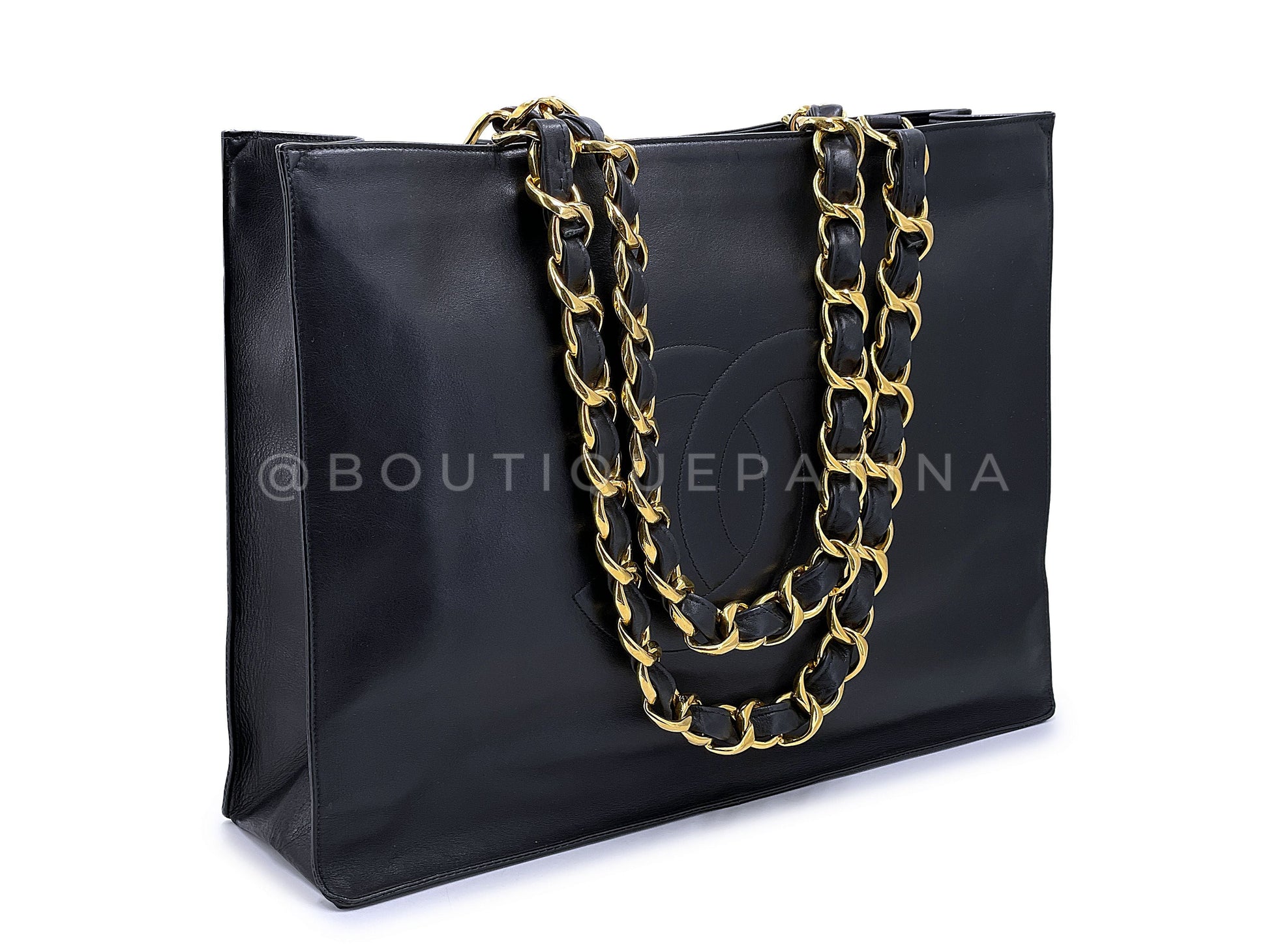 Chanel 1994 Vintage Black Chunky Chain Shopper Tote Bag 24k GHW AO8