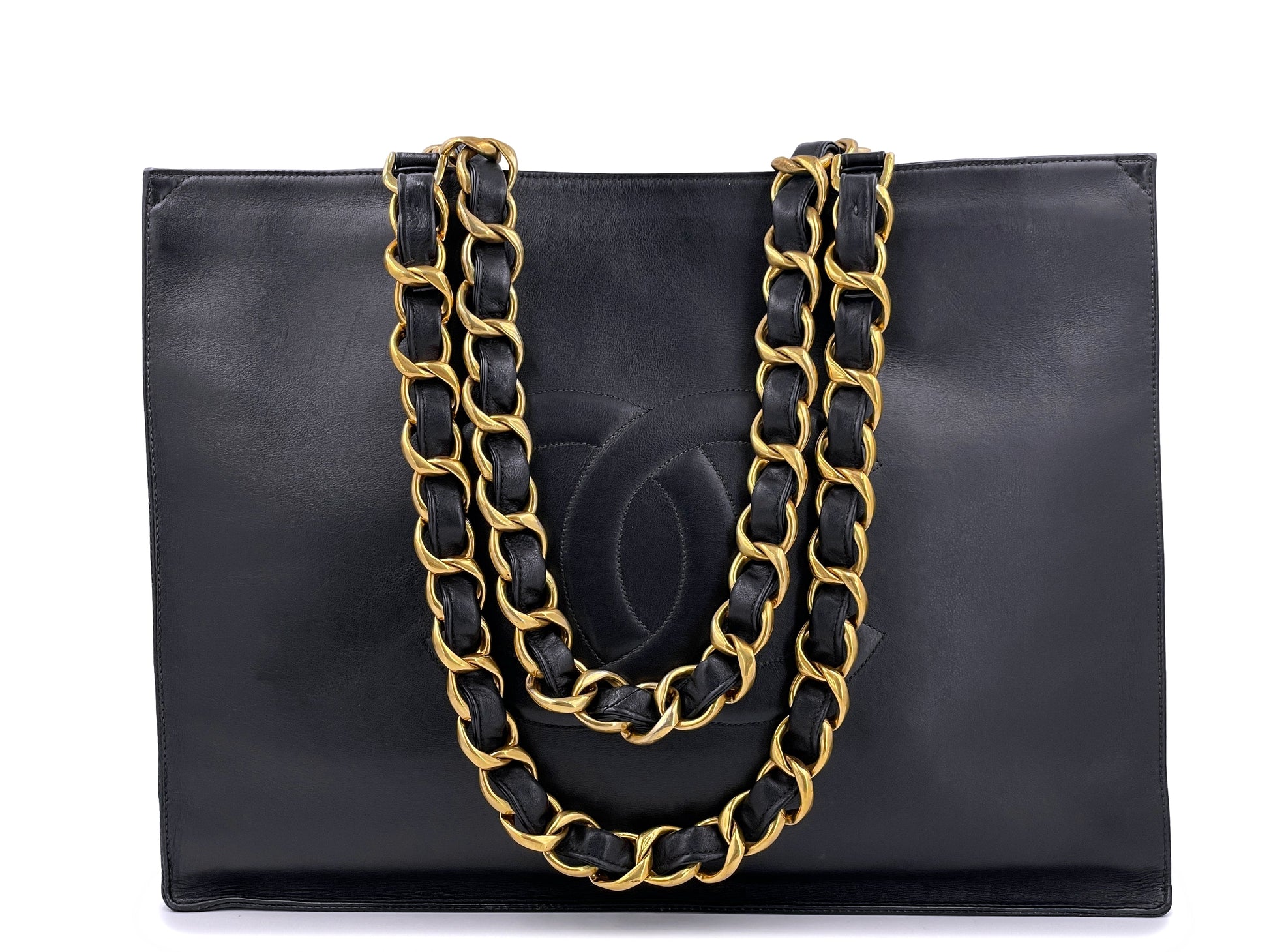Chanel 1995 Vintage Black Chunky Chain Shopper Tote Bag Calfskin