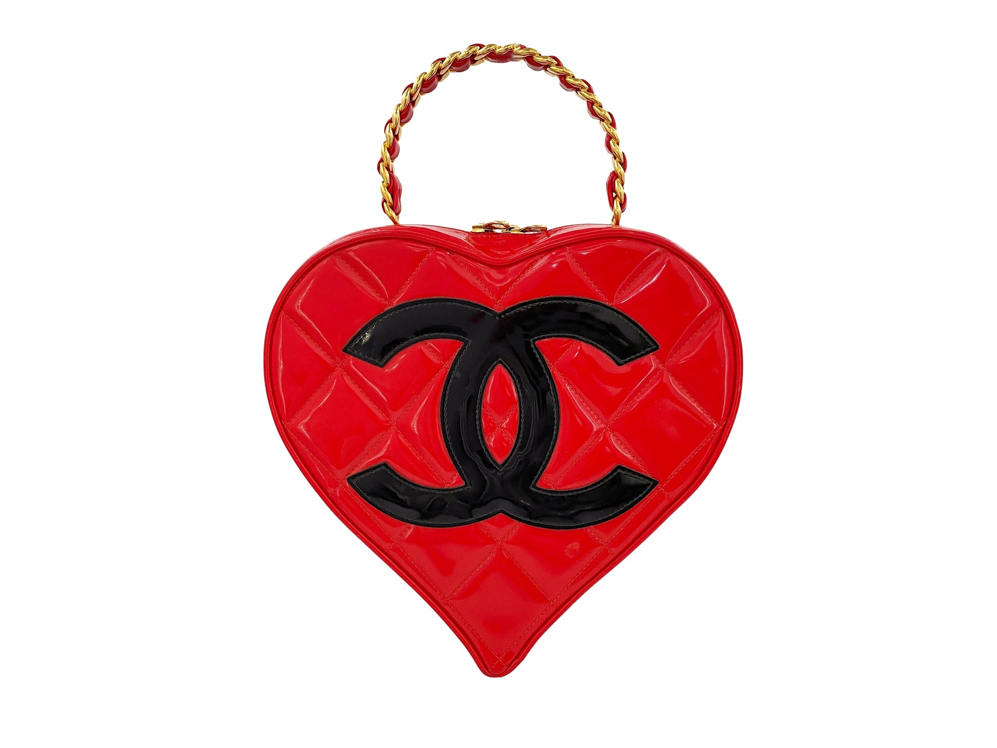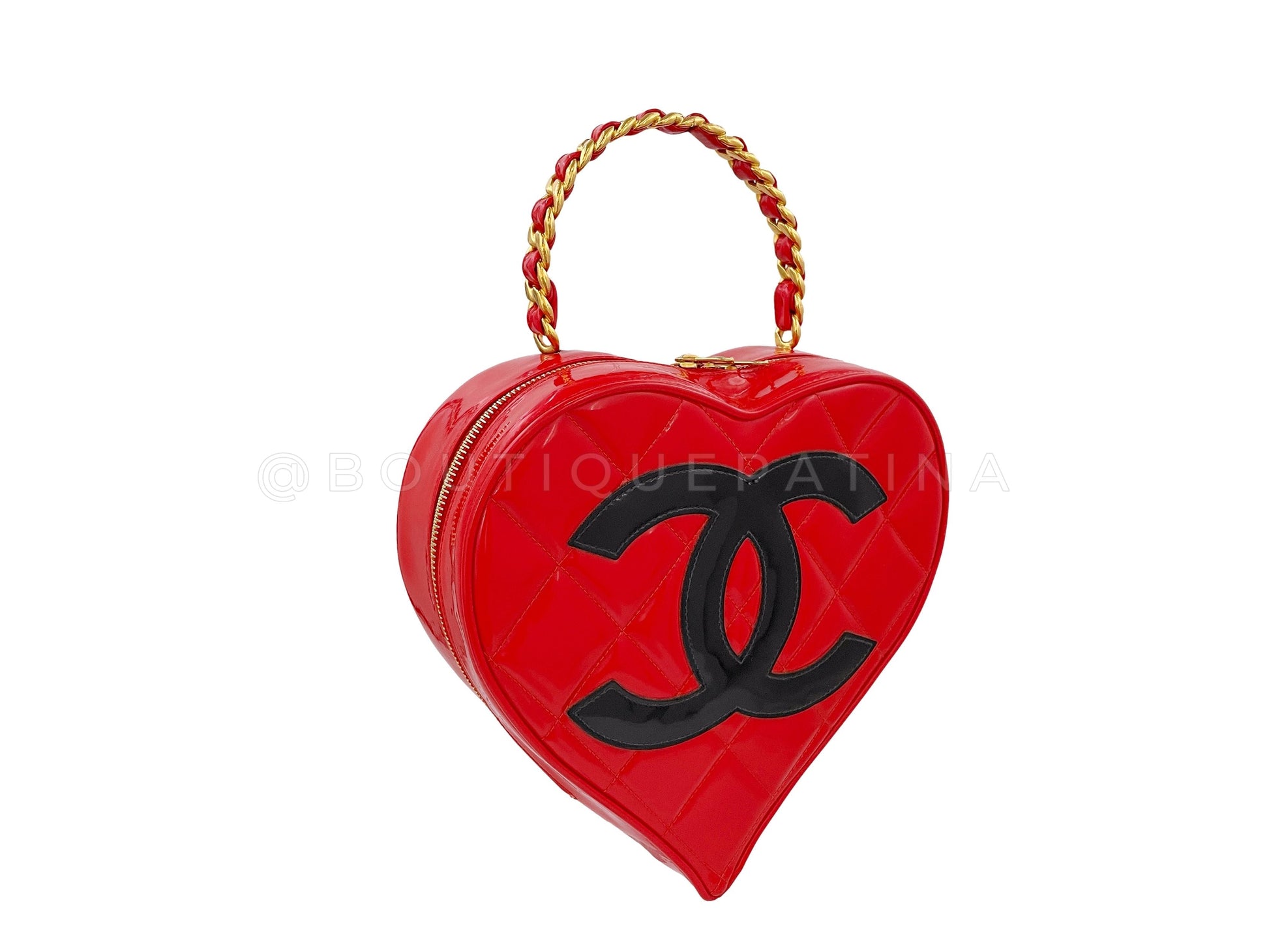 Chanel 1995 Vintage Red Patent "Barbie" Heart Vanity Logo Bag 24k GHW