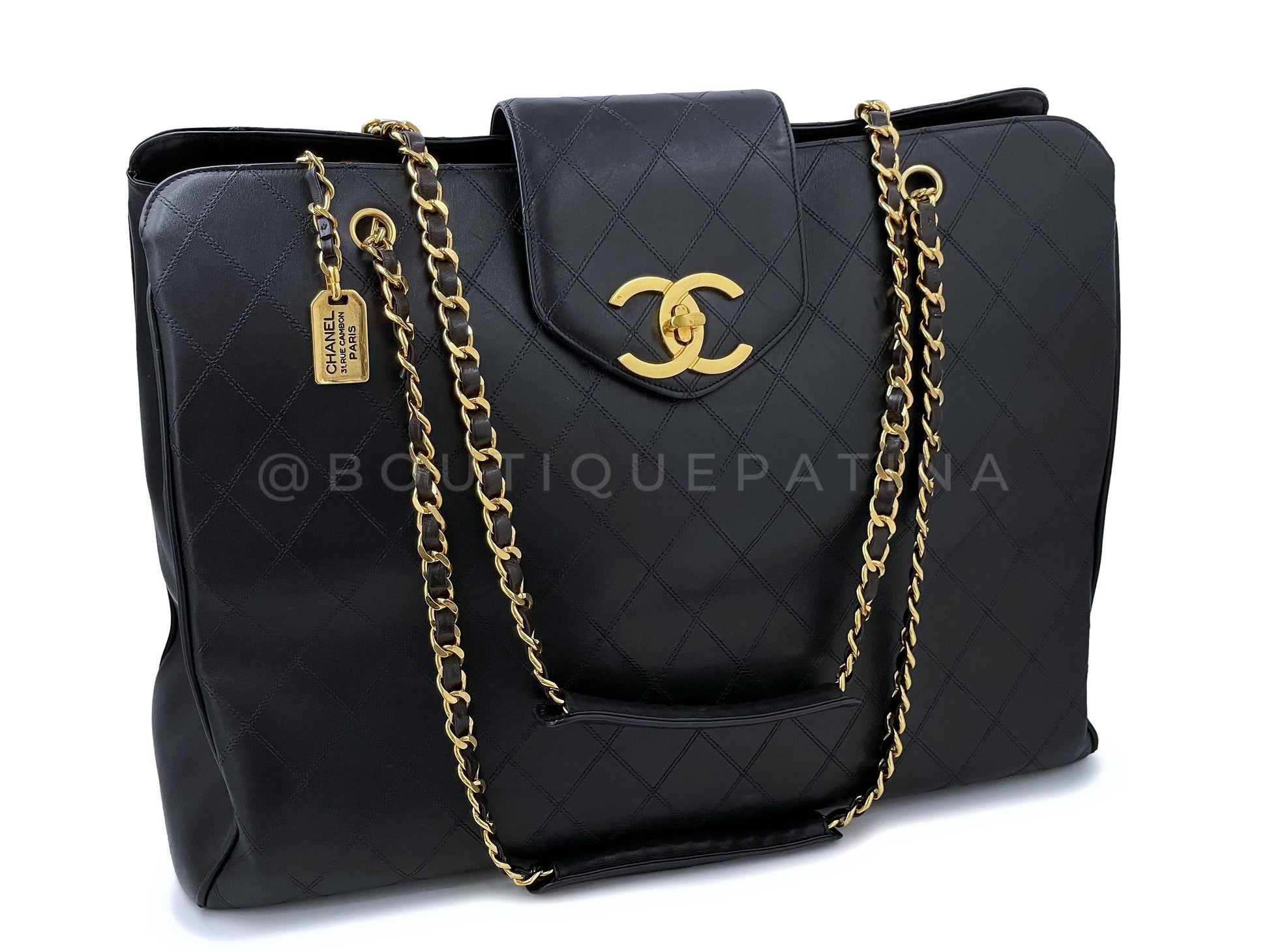 Chanel 1994 Vintage Black Supermodel Weekender XL Tote Bag 24k GHW