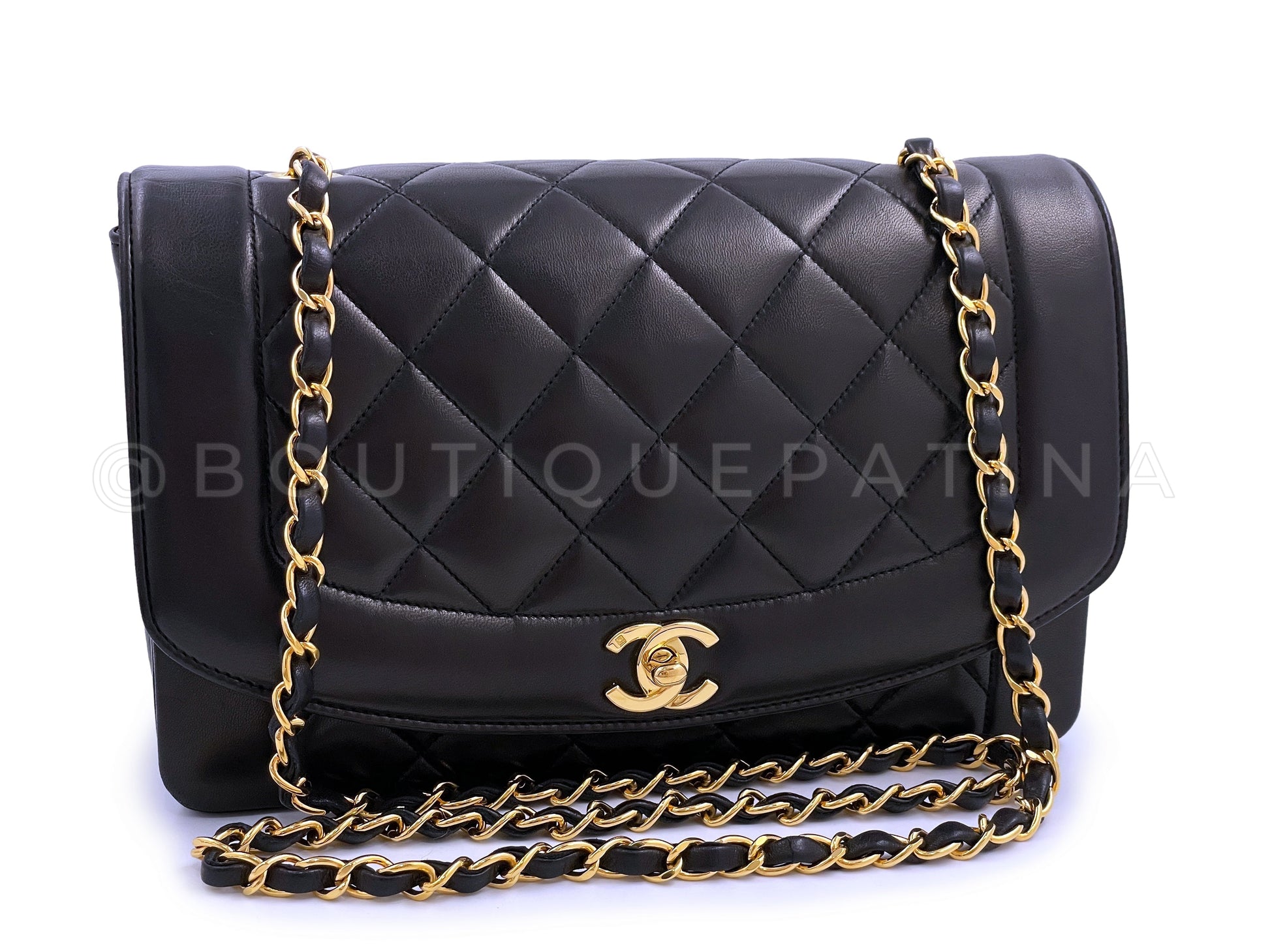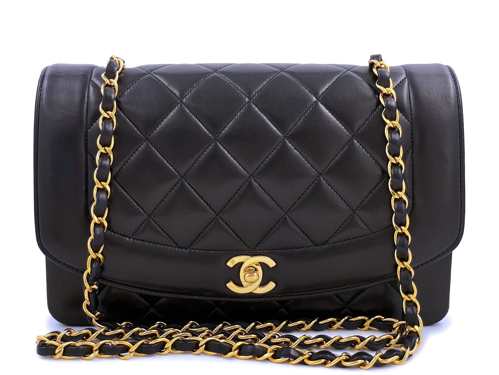 Pristine Chanel Vintage Black Medium Diana Flap Bag 24k GHW Lambskin