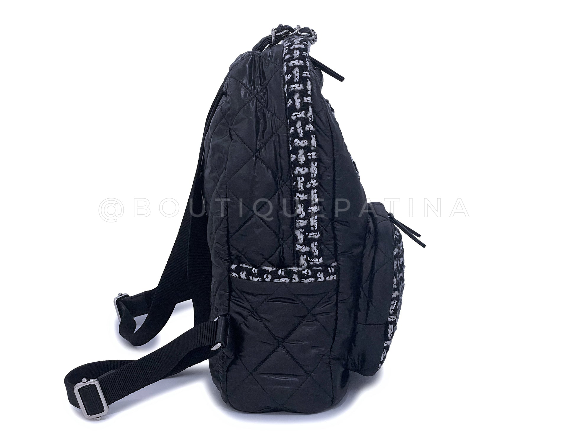 Chanel Black Tweed Coco Neige Logo Backpack Bag