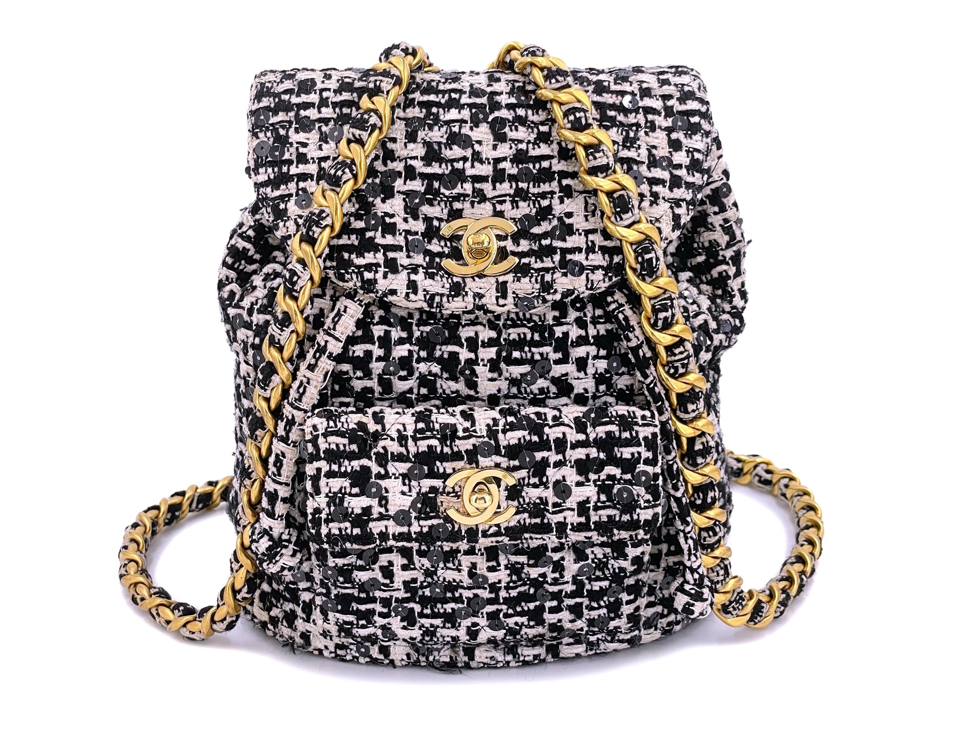 Chanel Vintage Tweed Duma Backpack Bag Black White 1994 24k GHW 7D2