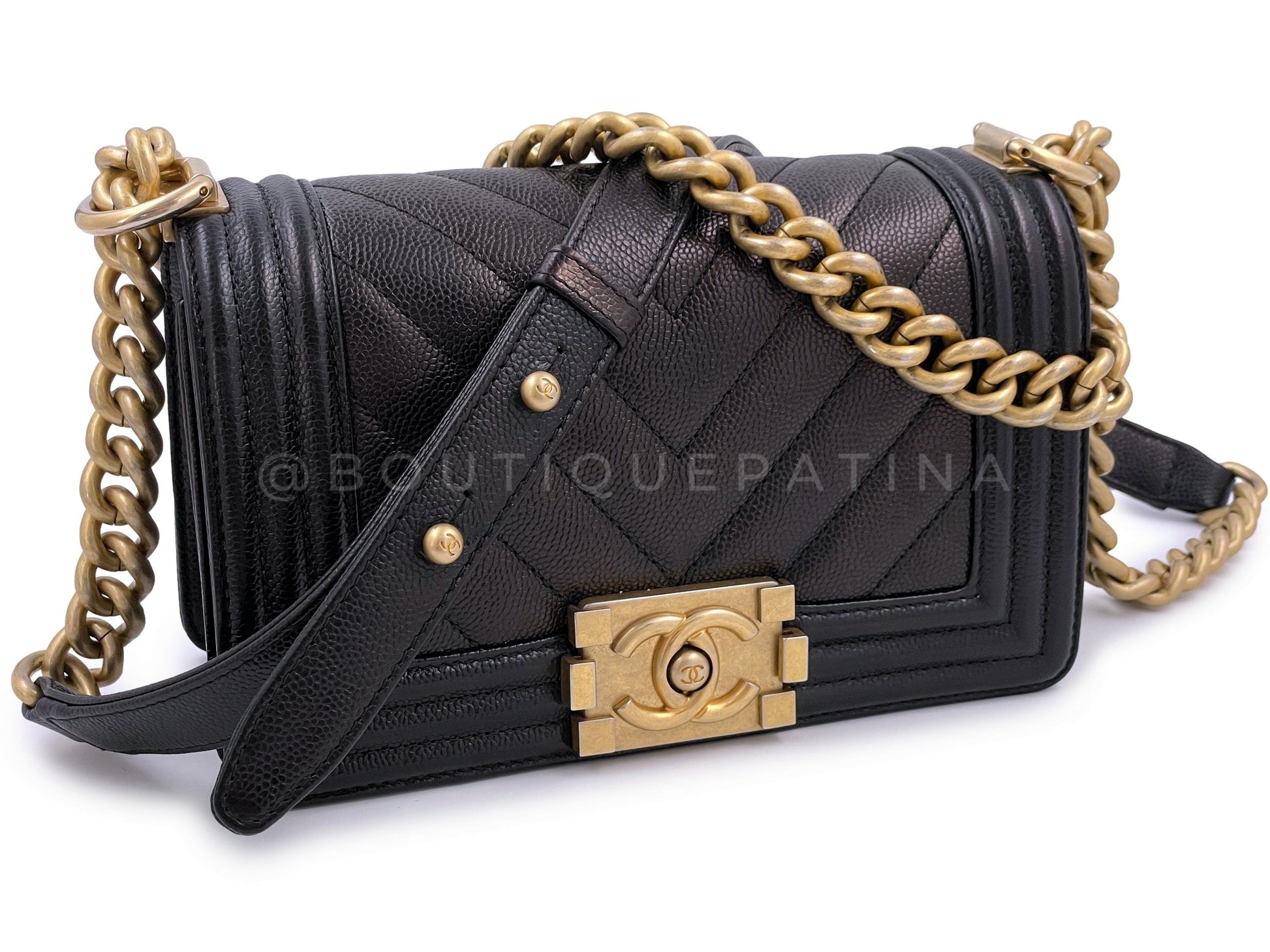 Chanel Black Caviar Chevron Small Boy Flap Bag GHW